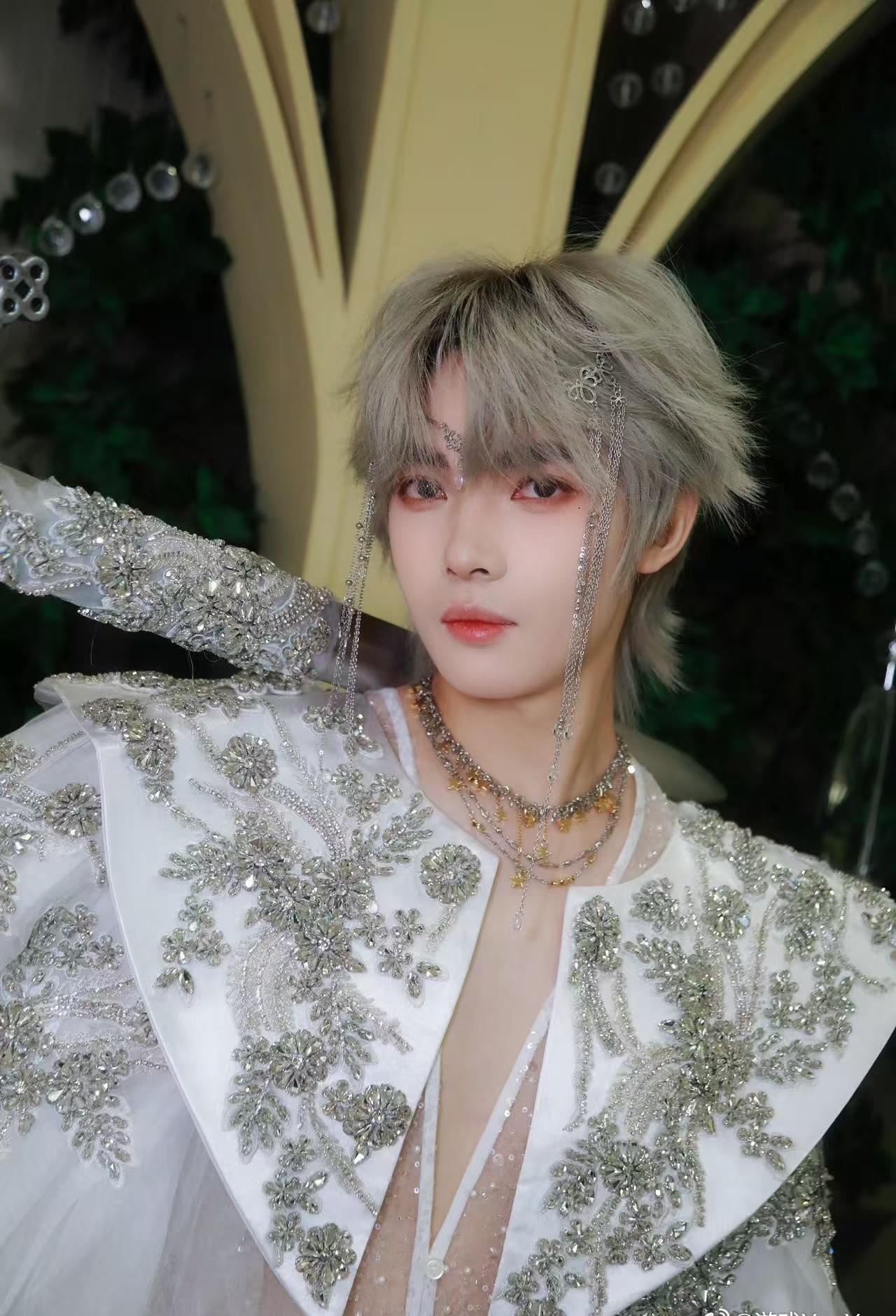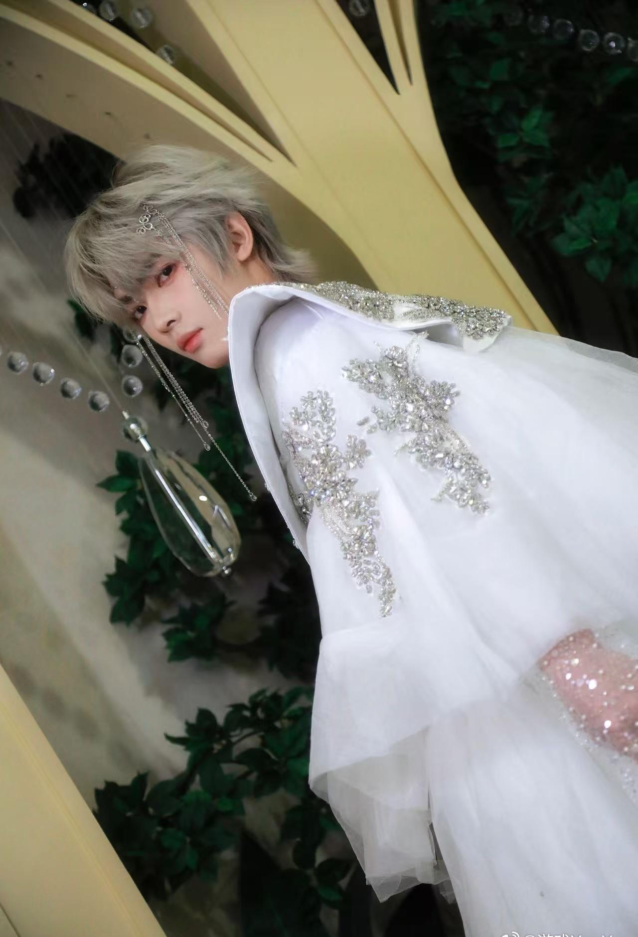 圣光为衣,少年为景!猫猫这套主题造型太会了,丝绒与薄纱碰撞出层次感,配饰细节拉满神圣氛围,走在红毯上宛如自带追光,电竞男模的时尚表现力果然从不让人失望~