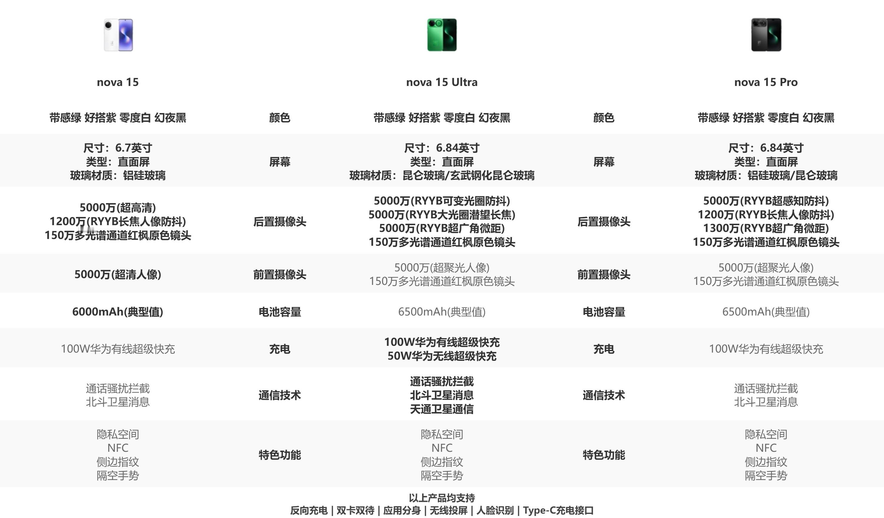 华为Nova15全系配置对比!性价比最高的应该是Pro[思考]和Ultra一样的