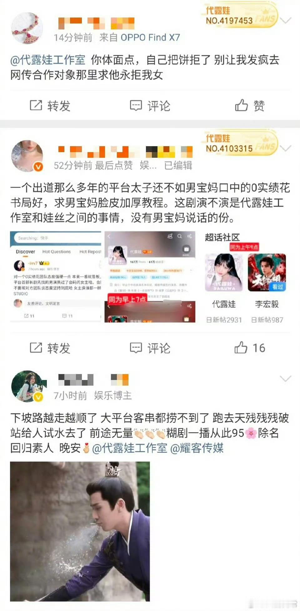 拒饼成功,粉丝把代露娃的《昭阳公主》撕掉了。之前男主李宏毅粉丝想要一番单宣大回车,代露娃粉丝在拒饼李宏毅 限高