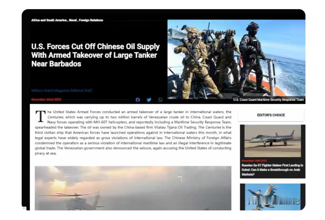 老美又搞小动作,扣押咱香港油轮,这都多久了,时间都到了也没个说法,简直太不讲道理。他们向来就爱仗着自己那点霸权到处惹是生非,在国际上横行霸道惯了。 咱也不能一直惯着他们。美对台湾军售本就是严重违反一个中国原则,给台海局势添乱子。要是咱拦截美对台湾军售船只,那可真是大快人心。这也是对美国的有力回击,告诉他们别想为所欲为。咱们得让美国知道,在涉及国家主权和领土完整的问题上,咱们绝不含糊,有能力也有决心维护自身利益。