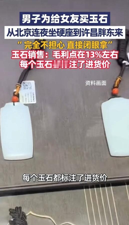 北京小伙为给女友挑块玉,连夜坐硬座哐当哐当赶到河南许昌——就为了去胖东来买!他说“这儿买东西,闭着眼拿都放心”,这话听着玄乎,却道出了无数外地人的心声。 12月24日胖东来玉石柜台前,销售大姐笑着说:“咱这儿玉石毛利就13%,每个价签上不光标卖价,连进货价都明明白白写着。”不像别处买玉得“斗智斗勇”砍价,这儿一分钱猫腻没有,连黄金柜台都把工费、克重、厂家信息列得清清楚楚,复杂款式工费顶多25块,比别家便宜一半还多。 更绝的是售后:买了不喜欢,一个月内随便退;戴久了想换款,一百天内免费换;哪怕戴十年,清洗保养永远不花钱。有顾客从上海飞来买金镯,说“这儿不光省钱,买得心里敞亮”。 你愿意为这种“放心消费”跑一趟吗?身边有啥让你觉得“闭眼买都靠谱”的店?评论区聊聊,转发让更多商家学学这实在劲儿~