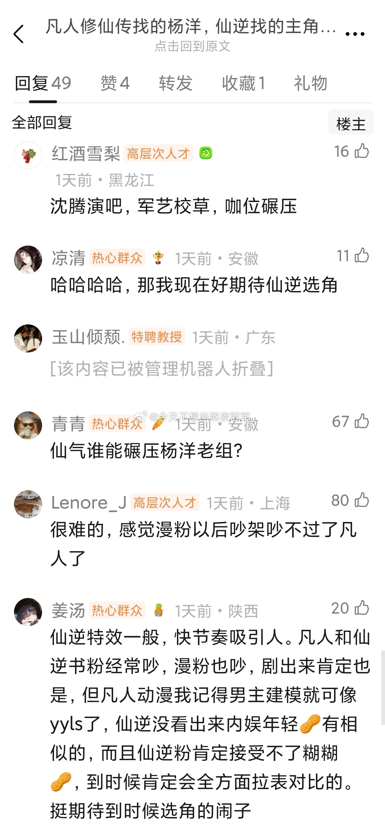 虽然杨洋对接已经说了不演《仙逆》,但没有一个ymls看了《仙逆》选角rs不会笑着走出来。仙逆和凡人漫粉本来就是宿敌,《凡人修仙传》直接给漫改修仙剧上了强度,不管谁演《仙逆》现在都压力山大