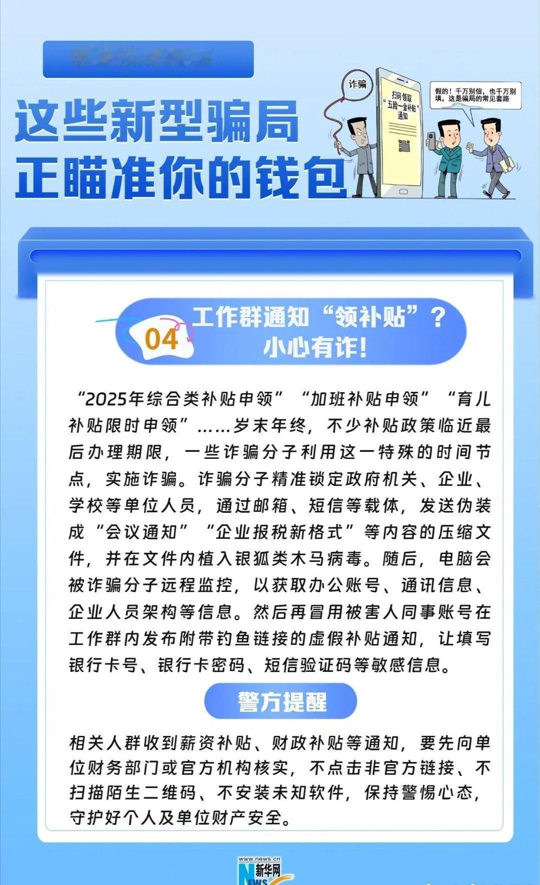 大庆师范学院[超话]警惕屏幕共享控制你的手机【这些新型骗局正瞄准你的钱包】临近年底,新型诈骗活动频发。近期,全国多地警方已发布风险提示。为大家盘点了几类最新骗局及防范要点,帮助大家筑牢安全防线,守好“钱袋子”。戳图,一起了解↓(via.@新华社 )