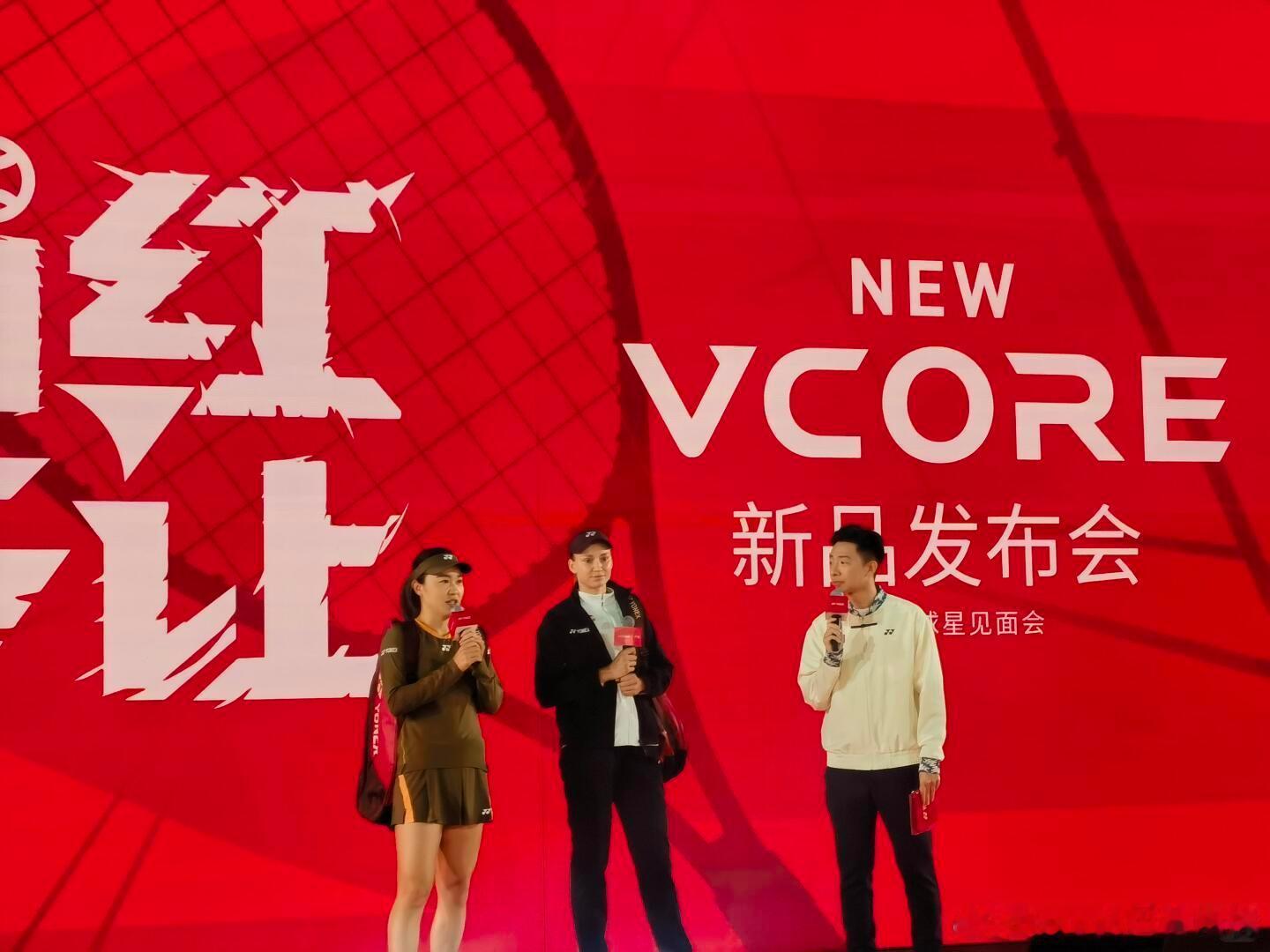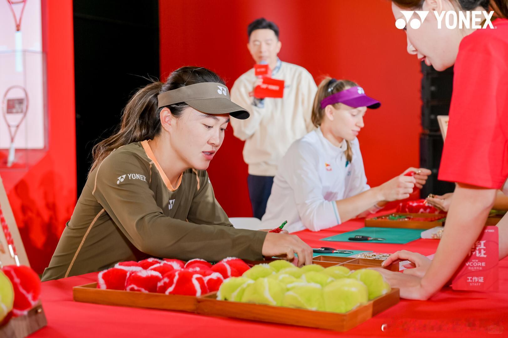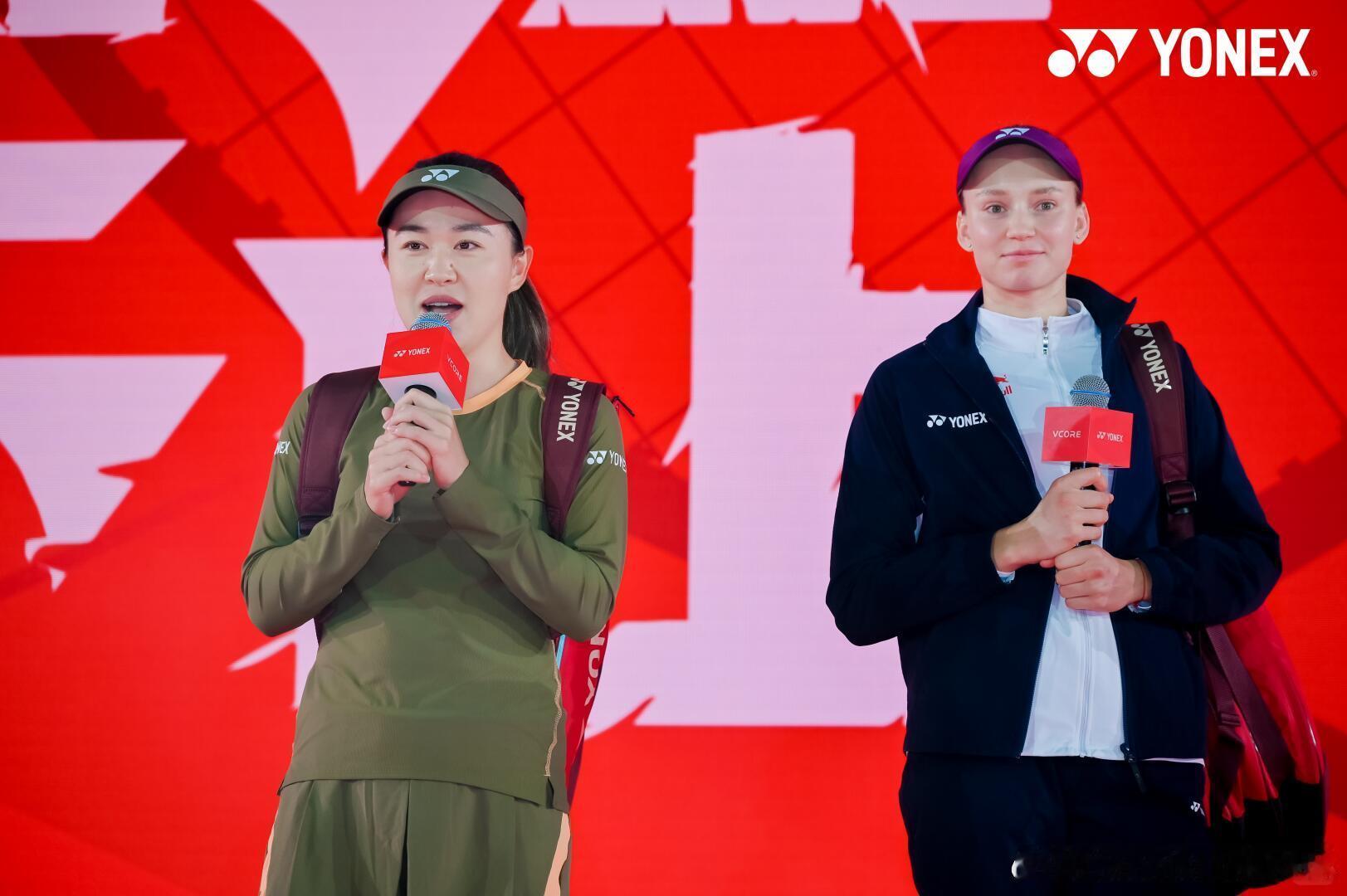 莱巴金娜,朱琳同框展示“当红不让”莱巴金娜和朱琳为yonex的vorce战拍做宣