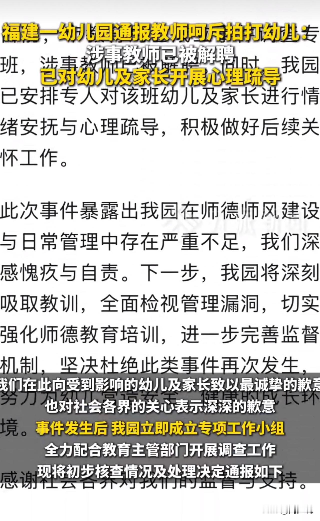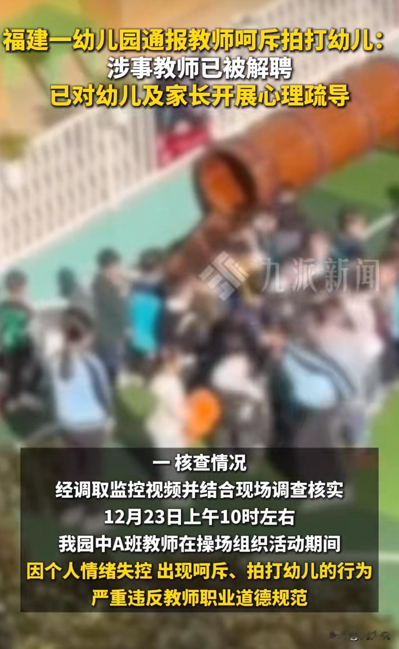 #幼儿园教师呵斥拍打幼儿被解聘#“真的被解雇了!”据媒体最新报道,呵斥拍打幼儿园教师已经被解聘,园方对受影响幼儿和家长进行了安抚和心理疏导,并向社会公开道歉。 对于该幼儿园的情况,有网友说:“老师也是人,有情绪可以理解,但不能把孩子当出气筒。这不是教育方式问题,是底线问题。” 也有网友指出:“一个老师的情绪管理,比教学能力更重要。孩子需要的是安全感,不是恐惧。” 这起事件在周少看来,应该给所有教育者敲响了警钟。师德师风不是挂在墙上的口号,而是每一次面对孩子时的选择。教育的核心是“爱与尊重”,一旦情绪失控,就已经偏离了教育的本质。 对幼儿园来说,不能只盯着招生和环境,更要把师德培训、情绪管理、过程监督真正落到实处。对家长来说,也要学会通过视频监控、孩子反馈等方式,及时发现问题、保护孩子。 孩子的童年只有一次,不能被一次失控的情绪留下阴影。愿所有老师都能守住底线,愿每一个孩子都能在尊重与爱中长大。#寻美三湘# #长沙新朋友#