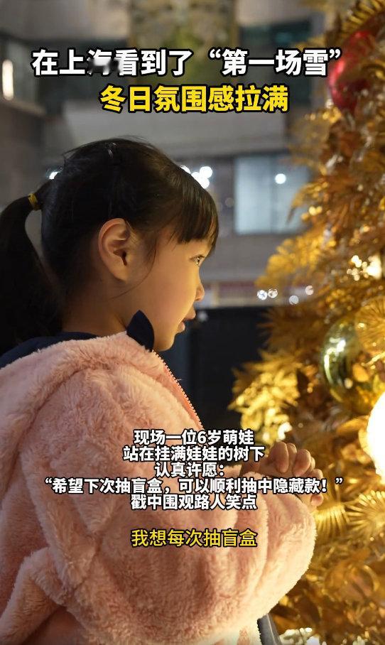 南方人对雪的执念到底有多深 这不就是对我直说的啊,作为南方人对雪的执着,你们是不懂的!没条件就创造条件。你看上海淮海中路户外广场的人造雪景,简直给南方的我们带来无限的乐趣和想象。看到6岁萌娃在痛娃树下许愿,我们就知道雪白的雪在孩子心中的份量。6岁的萌娃站在挂满娃娃的树下,认真许愿:“希望下次抽盲盒,可以顺利抽中隐藏款!” 哈哈,很童真,很可爱。