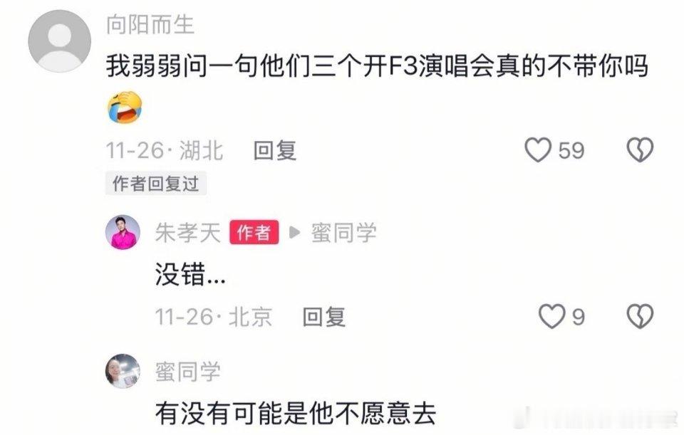 朱孝天自曝看新闻才得知被排.除F4名单,并否认自己泄.密演唱会安排。随后朱孝天爆料五月天音乐公司和黄🐮炒.票.价,逃.税,洗.钱,演唱会假.唱,造谣五月天的政.治.立.场。此前阿信演唱会两次感谢未能赴约的朱孝天,朱孝天回应“场面话听听就好了,从未收到邀请”,还公开表示与其他三位不熟,F4歌曲难听,就是为了消.费大众情怀。约他他说不来,来了他又说不熟,大家开开心心出来玩,他却把饭倒了还说他们不给饭吃……本来觉得没他遗憾也是人生的一种完美,毕竟看到F3了,现在看看他到底在干什么?大家都说朱孝天不体面,我觉得现在不是体面没有,而是底.线都没有了,他真的不适合活在成年人的世界,更不适合任何商.业活动。看来演唱会不请他是对的,是有原因的,这波操作着实让人很无语。。。朱孝天举报五月天所属公司