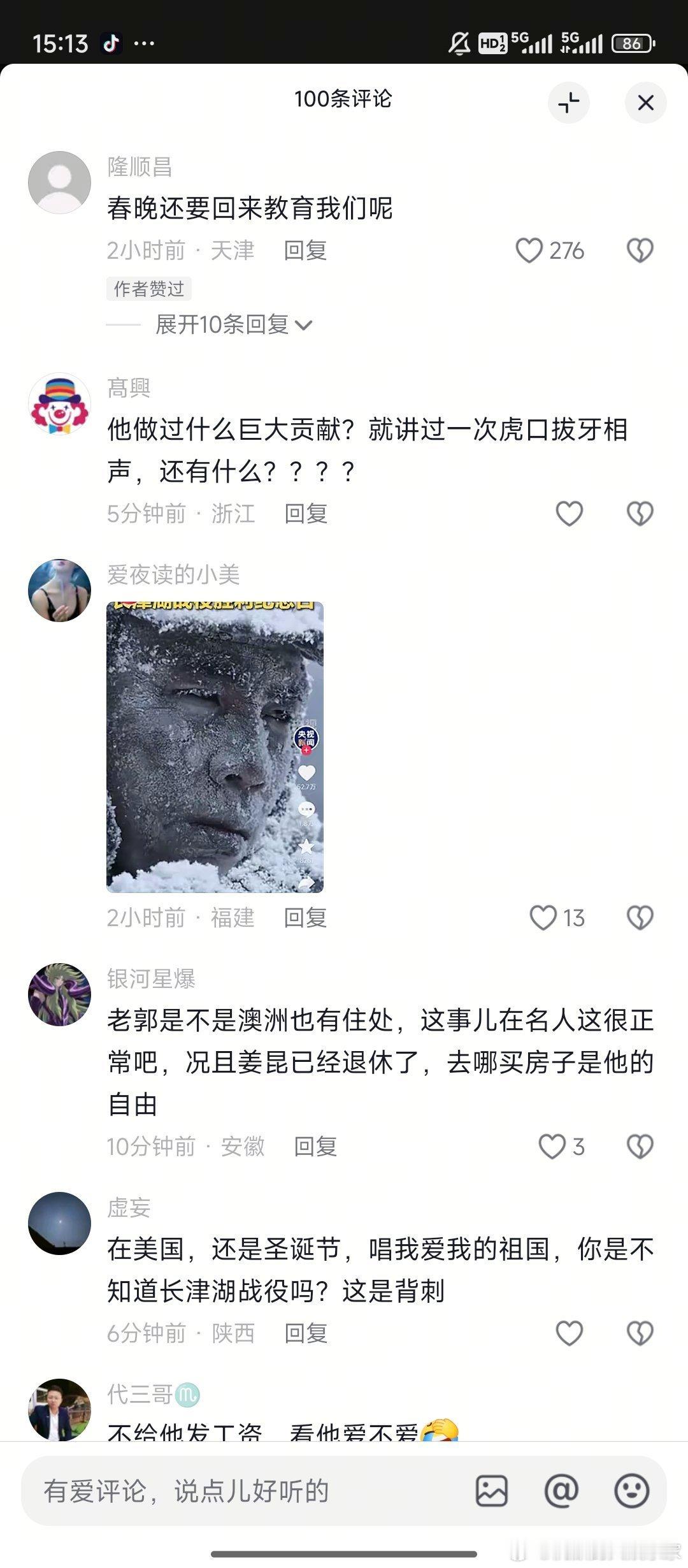 远在美国加利福尼亚的豪宅里,姜昆老师和一众老艺术家朋友们,在圣诞节来临之际高唱“我的祖国”,细心网友发现姜昆老师把评.论都关了。因为女儿姜珊早年留学并定居洛杉矶,所以姜昆才会频繁往返中.美。然而,身后别墅里的泳池、花园与红色歌曲的宏大叙事形成了鲜明反.差,质疑者讽.刺道:“用国内积累的财富享受海外生活,再高调展示爱国情怀,这是否是一种双.标了?”姜昆 圣诞节