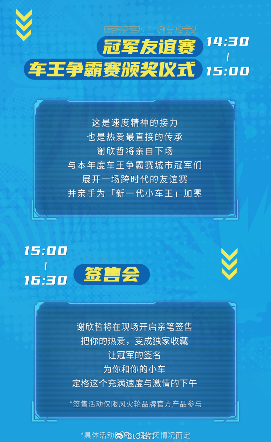 12月27日周六,风火轮车王争霸赛总决赛将在北京站举行!老哥会在现场与各位粉丝互
