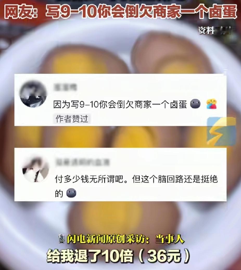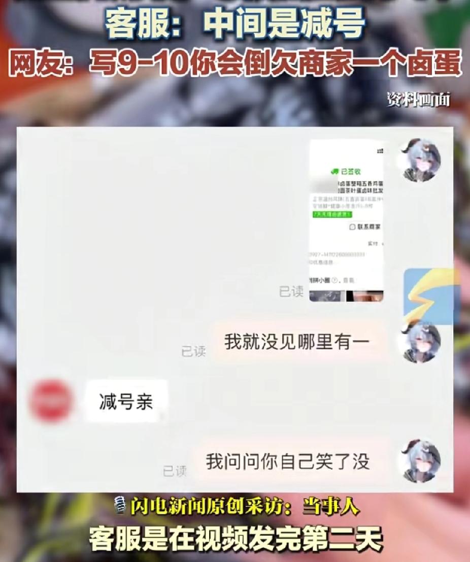 “太绝了!”河南三门峡,男子花3.6元网购“10-9”枚卤蛋。不料,到手1枚。客服: 中间是减号。他曝光后,客服给他退了36元。网友: 写9-10个,你会倒欠商家一个卤蛋。 原来,男子在网上购物平台看到一款卤蛋,还不错,就下单了。 他选的10-9枚的一款,实付了3.6元。 他以为有10个,或者9个卤蛋。 可让他没想到的是,他收到货后,里面只有1枚卤蛋。于是就找客服反馈,客服却告诉他说: “减号,亲。”这让他感到无语,他反问客服说: “我问问你自己笑了没。” 于是他把这个经历发到社交平台上,第二天客服给他退了10倍,也就是36块钱。 哪能想到这中间是减号,一般都会觉得这10枚,或者9枚,因此按客服这么说,中间是减号后,“10-9”,刚好得一个。如果标的是“9-10”个,哪是不是还欠商家一个。 有网友说: 我估计客服都憋不住笑了。 也有网友说: 不要贪图便宜啊!3.6元,怎么可能有9、10个,肯定有坑。 还有网友说: 我买垃圾袋写的是100,发过来是一百克。 其实商家这么写,就是吸引顾客,而顾客不仔细去看,或者不问客服的,还真以为3.6元就能买10个、9个卤蛋,于是便会下单。哪能想到,这中间其实是减号。 像看到这种,其实细想就不合理,3.6元买9个卤蛋,也太便宜了,这样卤蛋敢吃吗? 而且下单之前,可以看看评论区,还有询问客服,明确之后,再下单,这样也不会被套路。 这个事情,虽然从字面上看,商家似乎没有错,但是这种做法明显偏离了诚信经营的准则。 所以,还是提醒大家,在网购时,尤其是遇到超低价商品,务必仔细阅读商品描述,留意符号和备注。 毕竟,天下没有免费的午餐,这种看似“薅羊毛”的机会,背后可能藏着营销套路。 最后,商家追求流量无可厚非,但真正能留住客户的,永远是货真价实的产品和真诚的服务。 靠“脑筋急转弯”式的标题或许能带来一时点击,却也可能换来投诉、曝光乃至客户流失,诚信二字,永远是生意长久之道。 (来源: 闪电新闻)