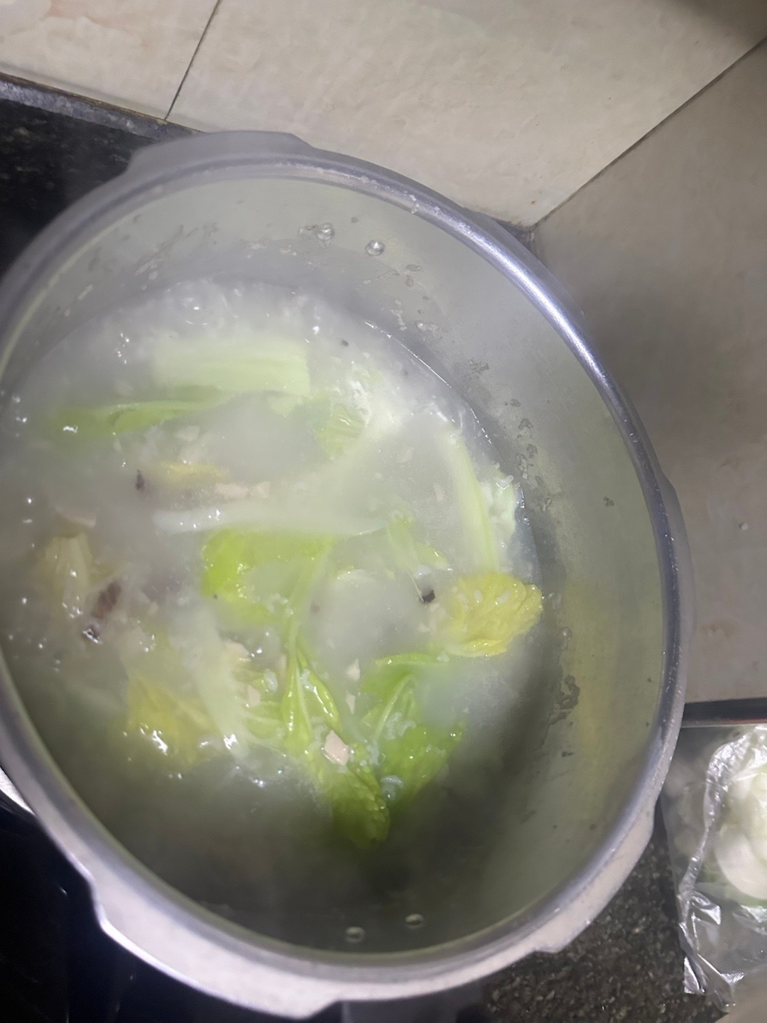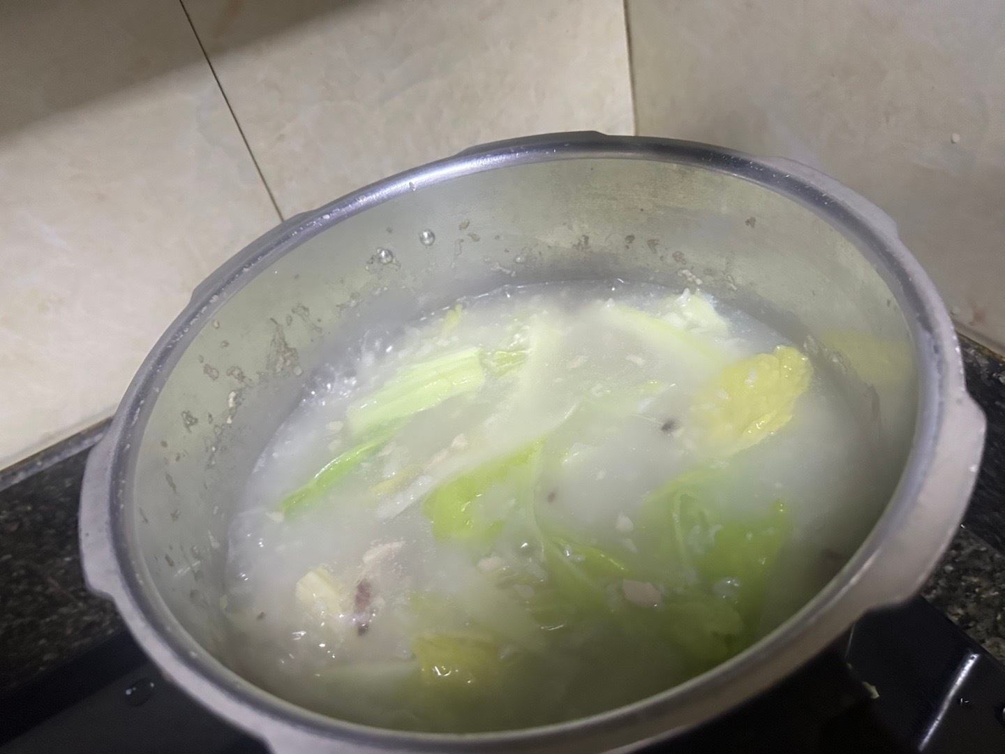 吃晚饭啦!你们喜欢吃这个白菜粥吗?加了腊肉好吃得很,真的很巴适的呢?