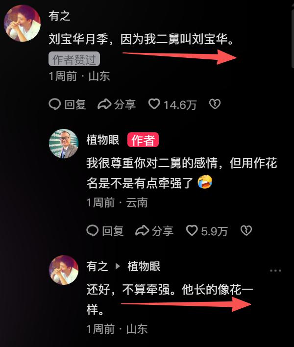 太好笑了!现在全网都催外甥发他“花一样好看”的舅舅刘宝华的照片。 事情是这样的,农科院培养了新品种月季,全网征名,结果一个网友说:“刘宝华月季,因为我二舅叫刘宝华”,还说二舅“他长的像花一样”,这个评论十多万人点赞,最后在投票环节 ,“宝华月季”一骑绝尘,真的被农科院采用啊。 送舅舅出名的人,这个网友是头一个。 很快,很多网友挤入他的评论区,让他发舅舅刘宝华的照片,大家都想知道舅舅是不是真的很帅,真的像花儿一样。 但是过去这么多天了,他仍然还没有公布二舅的照片。 不过大家都相信他二舅真的长得像花儿一样,因为外甥像舅舅,我们来看看他的长相,浓眉大眼,五官标致,从他的身上,我们不难想象他妈妈以及舅舅长什么样了。 网友说:外甥像舅,看你五官不差,我信你二舅长得帅。 的确,虽然二舅没有曝光,但是我想的确不会丑。