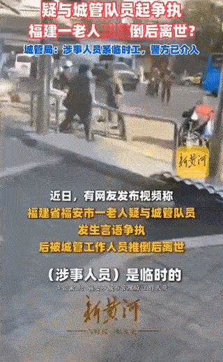 “为何会有这样的猫鼠之争”让人困惑的问题。 12月21日福安市察阳路与兴业路交叉口附近,一名身着制服的城管队员迎面跑向老人并将其推倒在地。附近商户证实老人为社区居民,并称其被推倒后“听说已离世”。 福安市城管局回应,涉事人员系临时工,事发当天已被停职,公安机关介入侦办。目前城管局与阳头街道办均未明确老人是否死亡,仅表示以[公安通报为准]。 这位老人疑因占道经营问题与城管队员发生口角。老人也是为了生活才占道经营,而城管也是为了维护城市的环境卫生以及城市的公共次序才设计的专业部门,完不成工作任务将会对直接管理的城管员进行处罚。 当公共场所的问题和个人生存的问题产生了矛盾后。该如何解决这是一个地方管理者该认真考虑的问题。悲剧发生必定有前因才会导致后果,是非对错常人难以道清。还是希望有能力的人,能够找到化解矛盾的办法,才会让我们的明天更加和谐友善。🙏🙏🙏