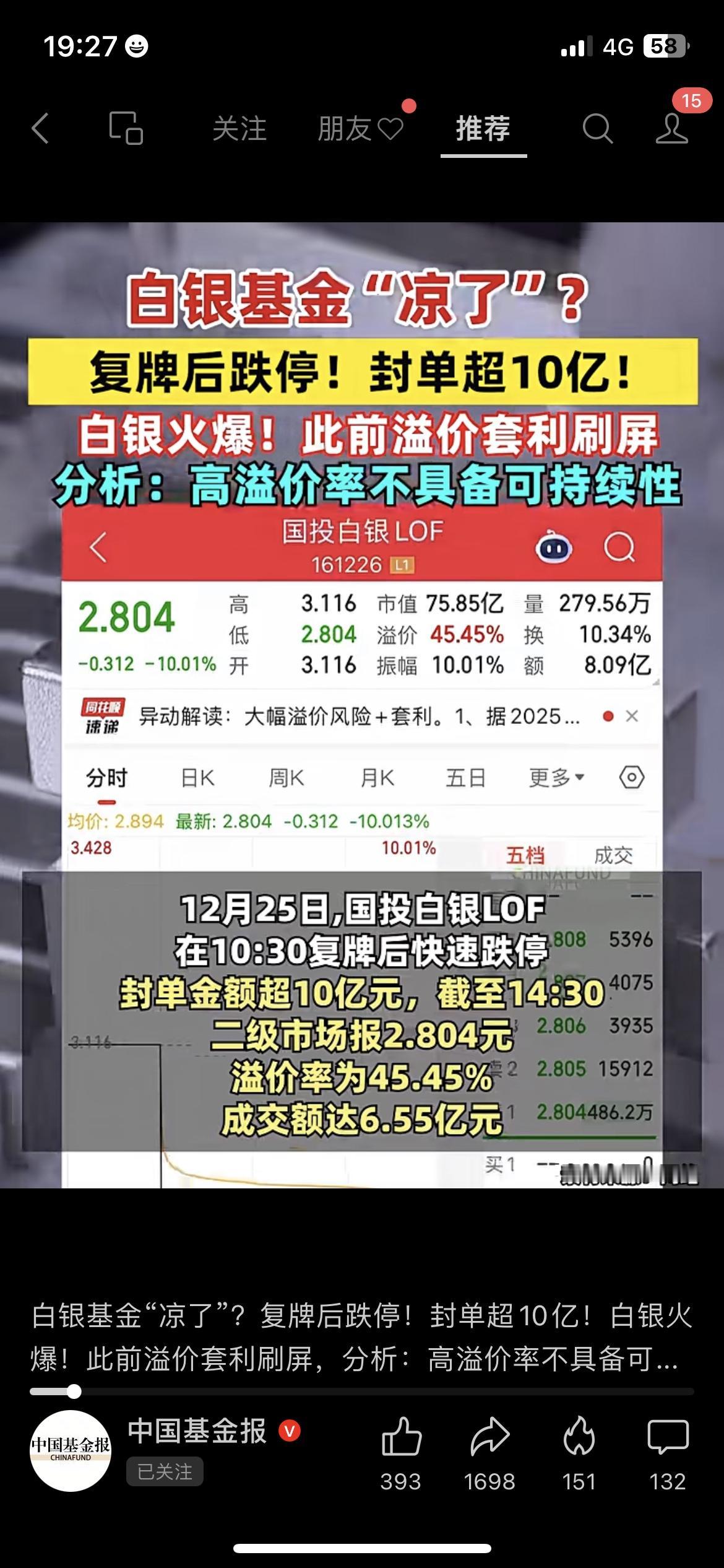 抄底白银LOF的全栽了!45%溢价跌停封死,小白基民血亏无退路 基金投资避坑 早间蹲守基金开盘的老张 盯着持仓页面直接愣在原地 国投白银LOF一字封死跌停板 卖单排队排到10亿开外 场内溢价率仍高达45.45% 隔壁理财群里炸开了锅 刚跟风冲套利的年轻宝妈 翻着账户浮亏截图,连补仓的底气都没有 溢价炒作本就是刀尖上跳舞 这只基金75亿市值砸出8亿成交额 散户抱着赚快钱的心思入场 到头来全成了高位接盘的冤大头 现在场内基金的溢价坑越来越多 盲目跟风只会把本金越亏越少 你近期有没有踩过基金溢价的坑? 遇到基金突发跌停,你会选择硬扛还是果断割肉离场? 白银追跌 基金白银