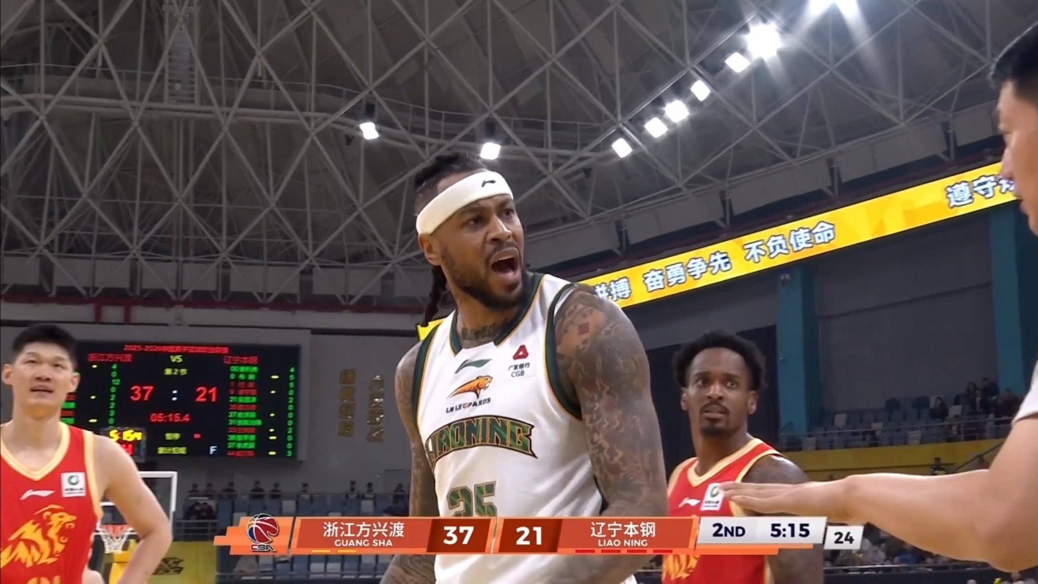 这是大莫生气的原因就在裁判眼下,桑普森抓着大莫的胳膊让他跳不起来。广厦男篮vs辽宁男篮辽宁男篮