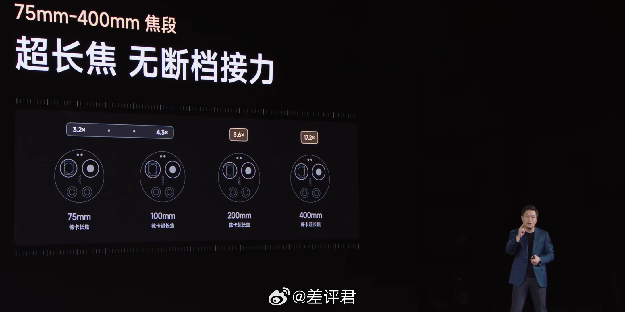 #差评说数码# 1 英寸大底主摄 + 2亿像素连续光变长焦的小米 17 Ultra,价格 6999 起(12+512),这价格大家觉得怎么样?这次的重点无疑就是这颗支持连续光变的中长焦,75mm-100mm 都能做到 2 亿像素出片,这是定焦的长焦头没法完成的。但可惜的地方也有,变焦范围还是比较小,我感觉现阶段它更大的意义是体验补全,或许以后这个技术再深入、变焦范围再变大,那么才是技术迈入实用了。#小米17Ultra# #小米发布会#