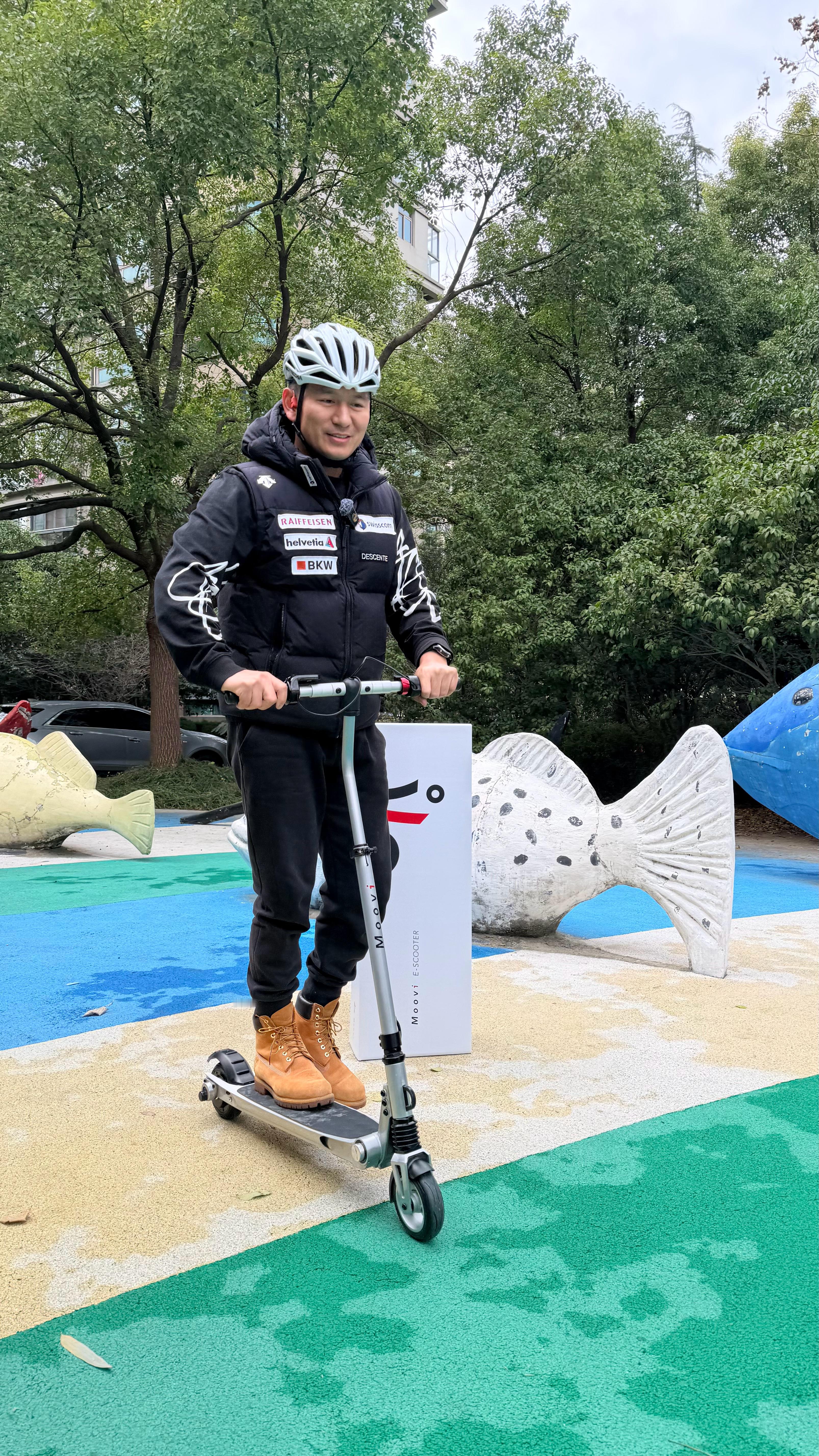 我最近一直骑的一台两轮Moovi E-Scooter 电动滑板车moovi骑行