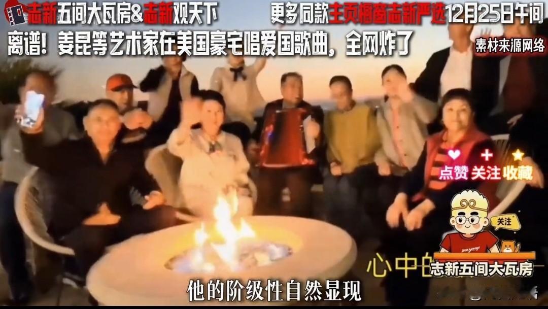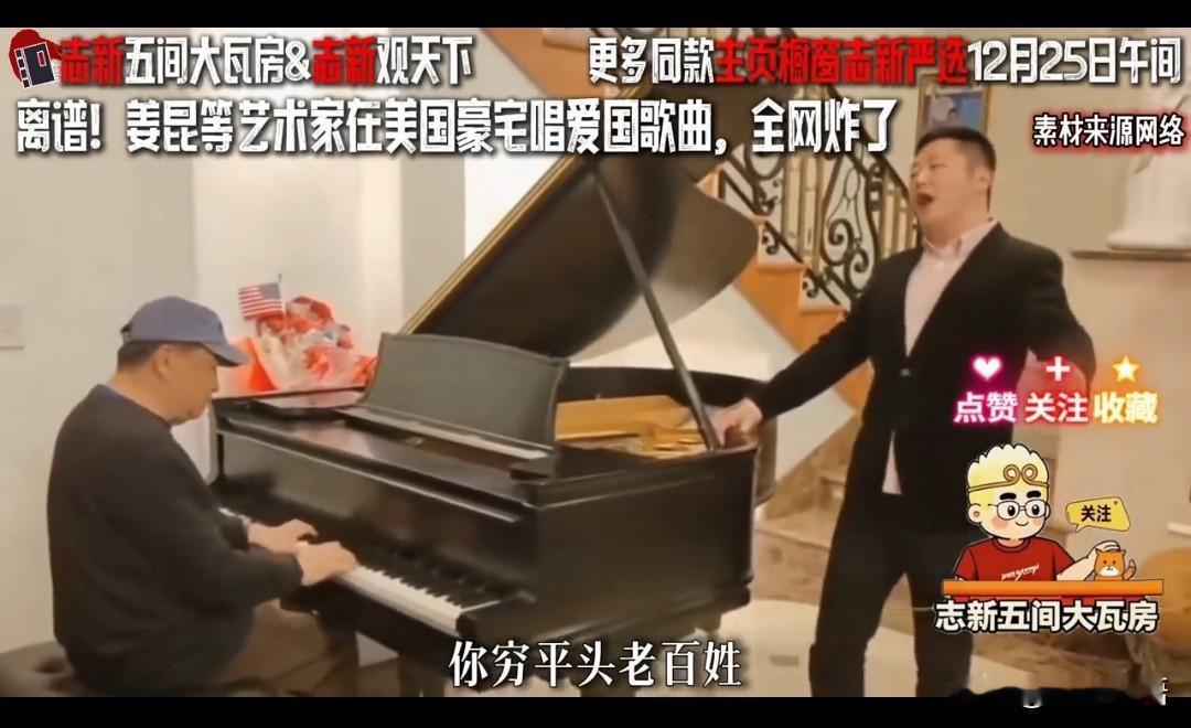 今天刷视频,发现很多人都在嘲讽姜昆,他出啥事儿了?原来他唱了一首红歌… 今天是圣诞节,在美国过圣诞节的姜昆领着一群艺术家在唱《我和我的祖国》! 网红大咖志新(五间大瓦房)评价说:“他们这个阶级,他们那个阶层就是这样爱国的,为什么说他们不靠谱啊,因为那一群有钱人随时能跑,万一出了什么情况,他们脚底抹油就行了,咱们穷人跑啥呀,往哪跑?” 志新说的有道理吗?