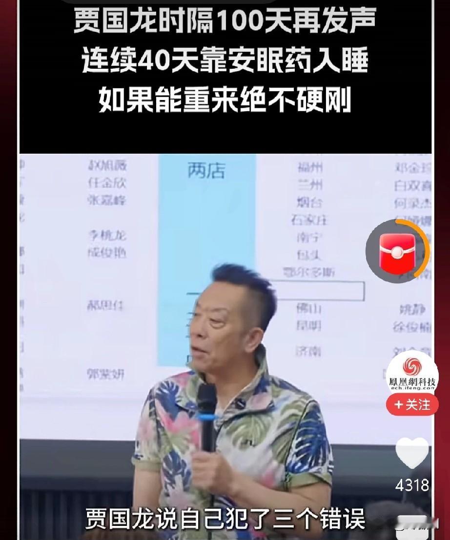 时隔100天,贾国龙再度发声,称自己连续40天需靠安眠药才能入睡。 他自我总结,错在以下三点。 其一,不应正面硬刚。 其二,不应开饭后厨。 其三,不应在群聊中使用“网络黑社会”一词。 冷傲剑觉得,贾老板并未真正意识到自身错误所在,而且他也无需再反思了,因为他对自身问题视而不见,这是他难以改变的。 他是否真心做餐饮,在通过餐饮盈利的同时,能否真正为顾客着想,让顾客吃得安全、吃得放心,这才是关键所在。 其次,他做人能否问心无愧,能否将自己的缺点毫无保留地展现在大众面前。大众是否能接受真实的贾老板,这一点仍难以预料。 互联网既能放大一个人的优点,也会放大其缺点。 人无完人,企业亦是如此。当优点和缺点都被放大后,一切便难以掌控。 毕竟,你永远无法让所有人都满意。所以,贾老板还是多关注自己的企业,少在网上发言。 用心经营企业,大家都会看在眼里。