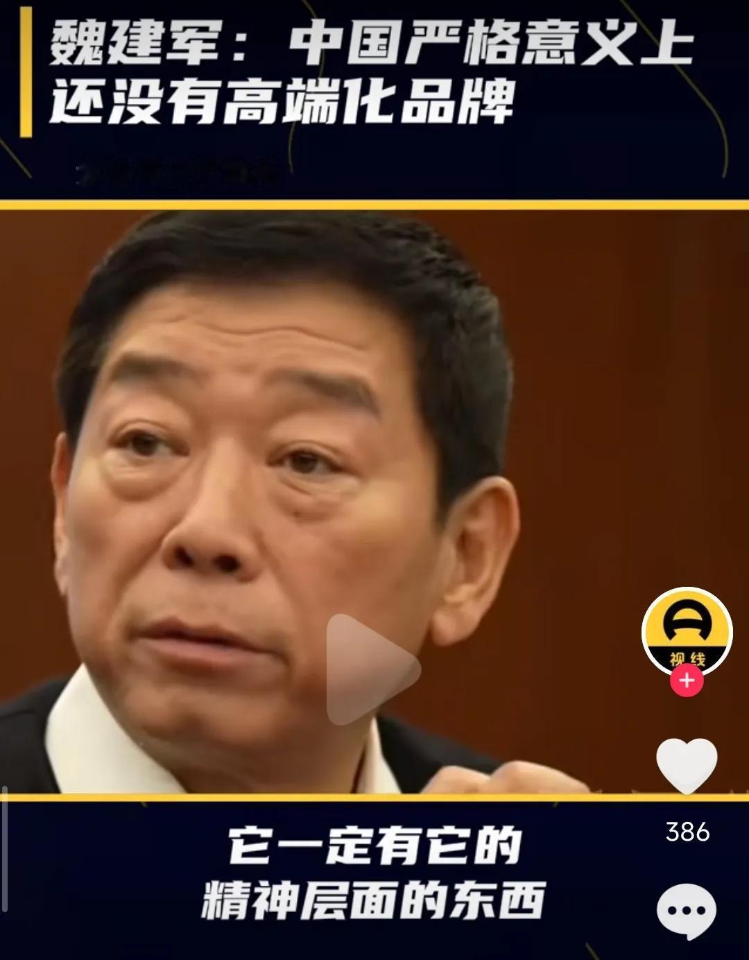 魏建军又得罪人了,说中国严格意义上还没有高端化品牌,老魏还特意强调高端品牌一定是有精神层面的东西,也就是价值观,不是你说高端就高端。 那么国内自主车企到底有没有高端品牌?红旗金葵花算不算?蔚来算不算?魏牌算不算?见仁见智吧,魏建军核心观点是:中国车企已有高端产品,但无严格意义上的高端品牌——高端不只是高价与堆料,更需品牌价值溢价、心智占位、精神与文化沉淀,而这恰恰是当前自主车企的短板,长城也不例外。 比如问界m9售价50+万,销量也远超bba同级别车型,但高售价依靠的是产品力,而不是品牌溢价;BBA则靠长期技术标签(宝马操控、奔驰豪华)与用户心智实现品牌驱动定价。 说到底,国内到底有没有高端品牌,大家怎么看?