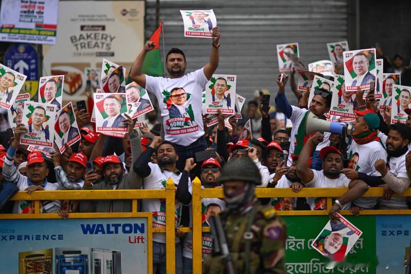 【流亡海外近17年,孟加拉新总理热门人选回国】海外新鲜事 孟加拉民族主义党(Bangladesh Nationalist Party,BNP)代理主席塔里克·拉赫曼(Tarique Rahman)25日结束近17年的流亡生涯返回孟加拉国,受到大批支持者的热烈欢迎。孟加拉将于明年2月举行全国大选,BNP希望借拉赫曼回国之势动员选民,争取成为国会第一大党,并推动其出任下一任总理。从机场到欢迎活动现场,成千上万名支持者沿途夹道迎接,有人挥舞党旗、举着标语横幅或手捧鲜花,高呼口号。BNP多名高层在严密安保措施下亲赴机场接机,场面声势浩大。拉赫曼身着浅灰色细格纹西装外套,走出机场后当场脱下鞋子,赤脚踏上国土,并抓起一把泥土,象征在旅居海外多年后终于回归祖国。随后,他乘坐巴士前往欢迎会场,站在驾驶座旁微笑着向车外争相目睹其风采的支持者挥手致意。现年60岁的拉赫曼是孟加拉前总理卡莉达·齐亚(Khaleda Zia)之子,自2008年起旅居英国伦敦,并自2018年起担任BNP代理主席。此前,他因涉及多起刑事案件长期滞留海外,包括在缺席审理情况下被判洗钱罪成立,以及牵涉一宗涉嫌策划暗杀前总理谢赫·哈西娜(Sheikh Hasina)的案件。随着哈西娜去年在由学生主导的抗议浪潮中下台并流亡海外,针对拉赫曼的相关判决也相继被推翻,为其回国扫清法律障碍。拉赫曼此次返国亦带有个人层面的紧迫原因——其母亲、前总理齐亚已病重数月。BNP表示,拉赫曼下机后先出席欢迎活动,随后将前往探望母亲。在哈西娜下台后,孟加拉政治格局发生剧烈变化,持续数十年由齐亚与哈西娜两大家族轮流执政的局面宣告终结。美国智库“国际共和研究所”(International Republican Institute)本月公布的民调显示,BNP有望在明年2月12日的大选中赢得最多议席。若结果成真,拉赫曼或将追随母亲的政治足迹,成为孟加拉新一任总理。目前,哈西娜领导的人民联盟党(Awami League)已被禁止参加明年2月的大选。图1:孟加拉民族主义党代理主席拉赫曼25日结束多年海外流亡生涯返回孟加。 (美联社)图2:大批支持者25日夹道欢迎流亡海外多年的孟加拉民族主义党代理主席拉赫曼返国。 (美联社)