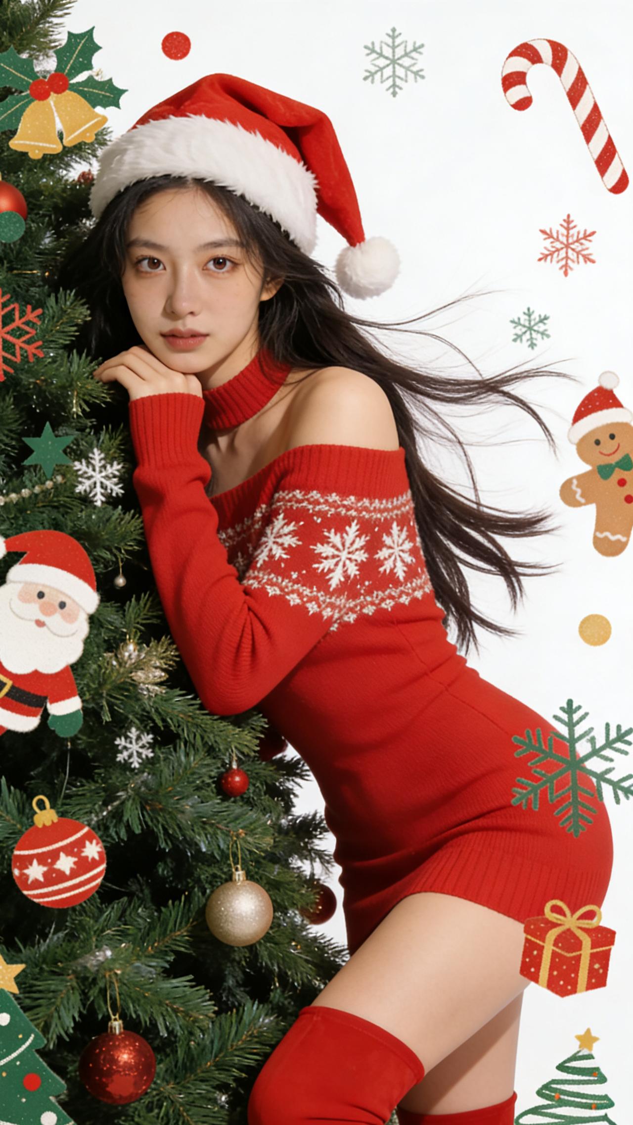 圣诞氛围浓厚的温馨场景,甜美少女与姜饼人共度美好时光。怎样穿搭能显示出温柔的女生