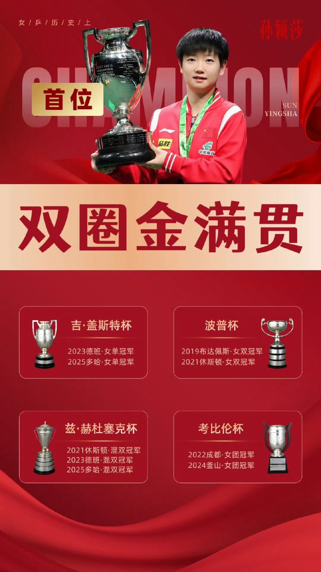 孙颖莎的2025数据流报告数据会说话,这就是统治级表现!• 赛场统治:单打64战59胜,胜率92.19%,40场外战全胜,狂揽11座国际冠军,与王楚钦实现混双世乒赛三连冠。• 纪录刷新:11600分断层领跑,连续180周世界第一,成近十年年终四连冠首人。• 人气实力双收:微博智搜指数破10亿,IP估值超3亿,更成球迷的"奋斗榜样"。