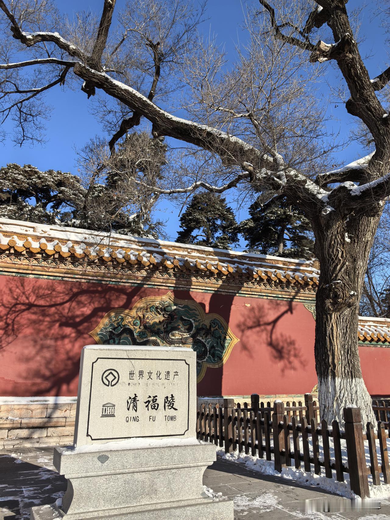 东北行最后一个景点,沈阳清福陵!努尔哈赤和皇后👸的陵墓。 游客超级少,和前两天去的张学良旧居和沈阳故宫,形成鲜明对比!?前天大雪,雪景超级美,蓝天白雪,万里无云~感觉这几天还不会融化,可以冲[心][心] 目前淡季,门票🎫20元,可惜下午赶飞机✈,来不及去旁边的郊野公园了~