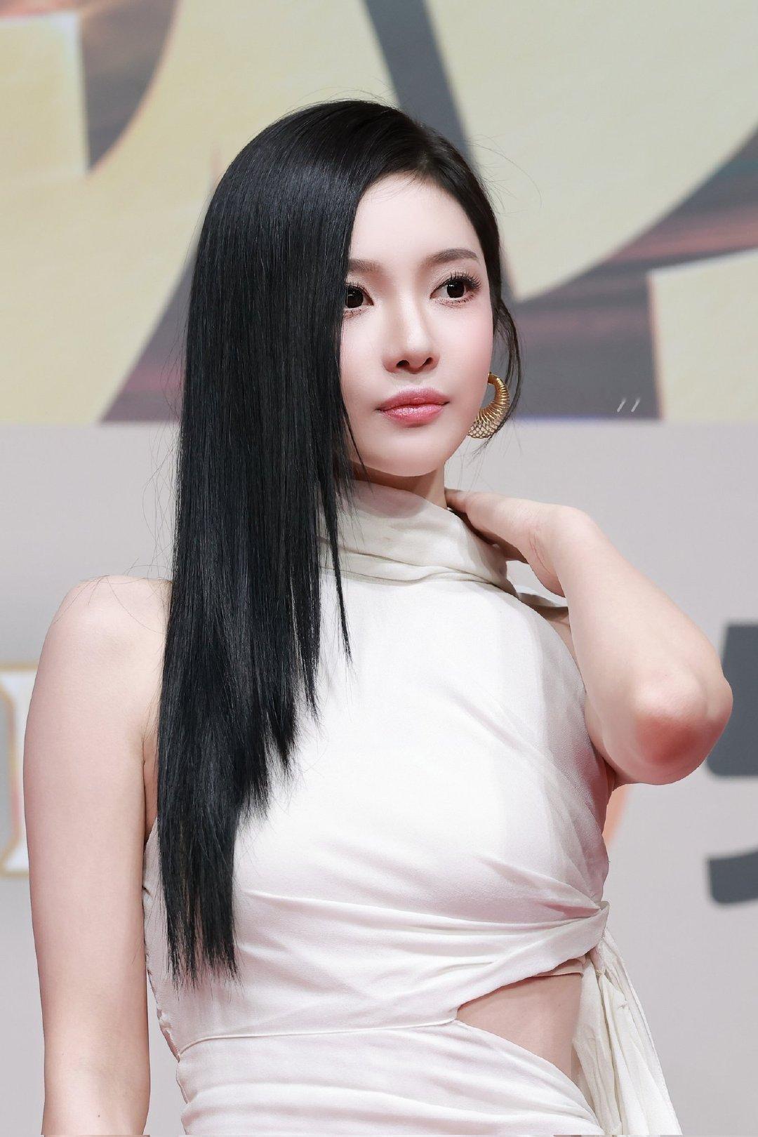 宁艺卓露腰礼服宁艺卓就这样轻松秒了,黑长直露腰白裙好有魅力
