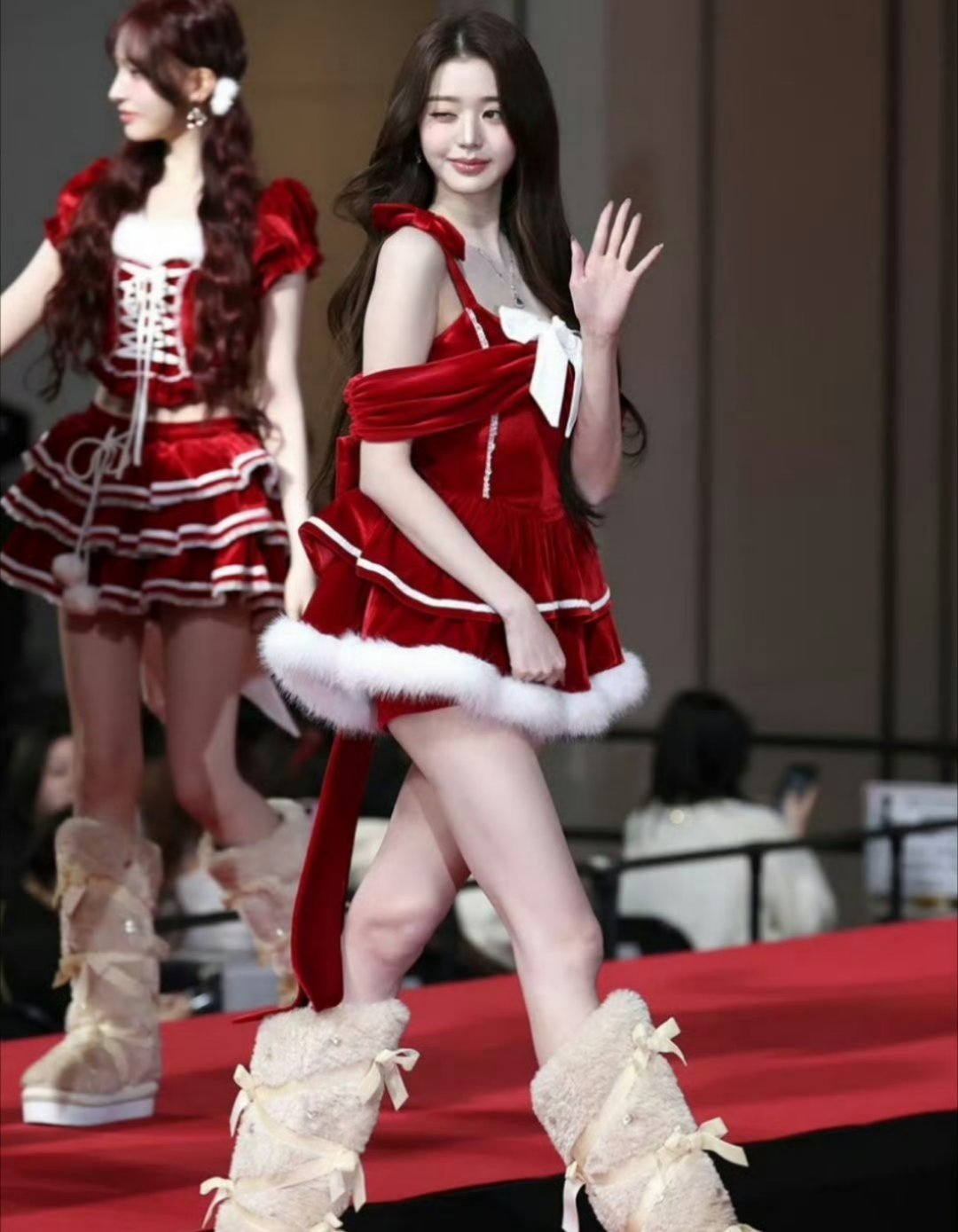 张元英红色圣诞裙,这也太漂亮了吧!圣诞小美女