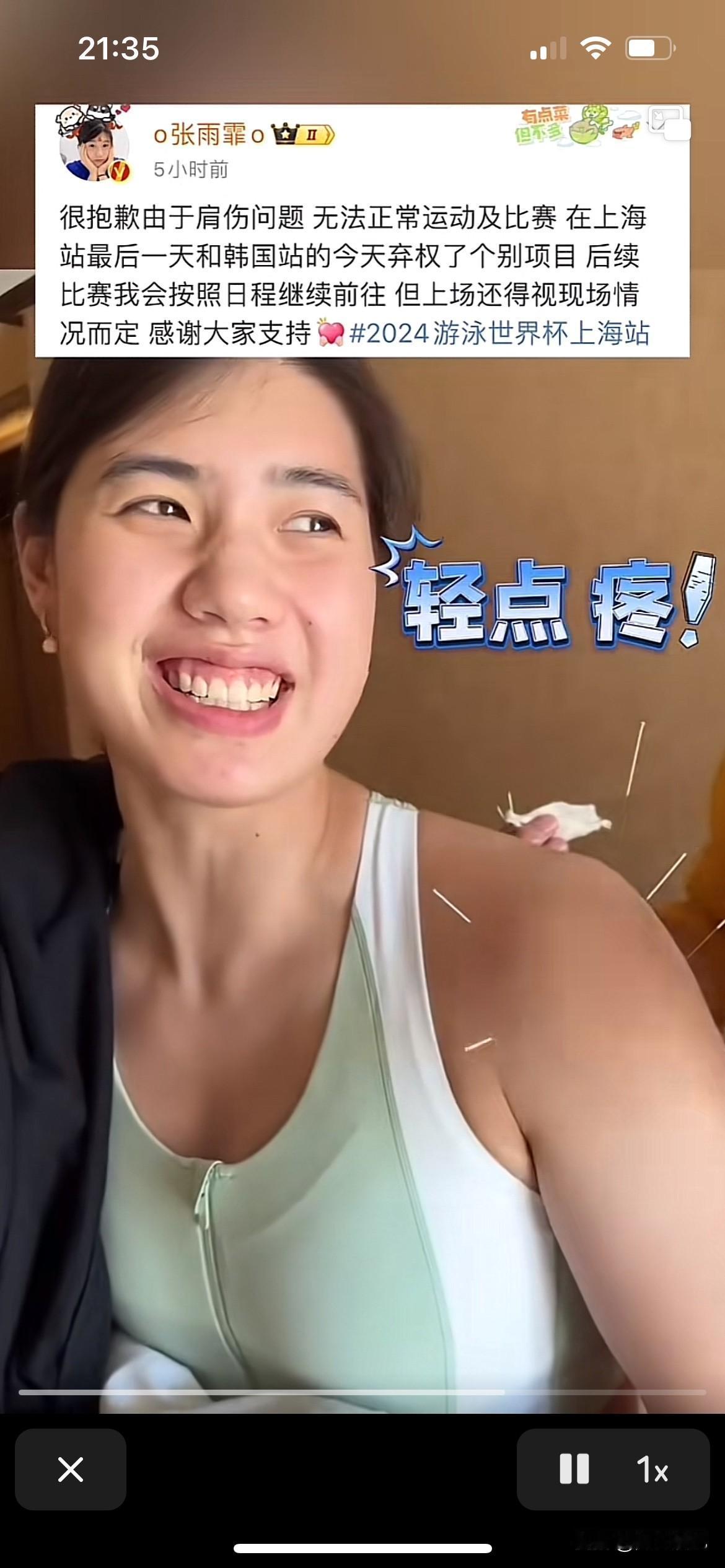 张雨霏这个小女孩太不容易了,看看这身伤病,真的是拼命为国争光,这种针直接插肉里,看着都疼,想到女孩子受这个罪,瞬间泪目,运动员们通过自己的努力为国争光,不要求每个人都尊重他们,至少不要恶意抹黑攻击造谣,更不要让他们沦为资本的工具,理性追星,多些尊重,少些恶意吧。 累了就休息,受伤了就好好养伤,不用跟任何人讲抱歉,在同龄人中,你已经是超级优秀的那一个了,你太棒了,太厉害了,是我们年轻人中的佼佼者,同龄人的骄傲,加油,你是最棒了。
