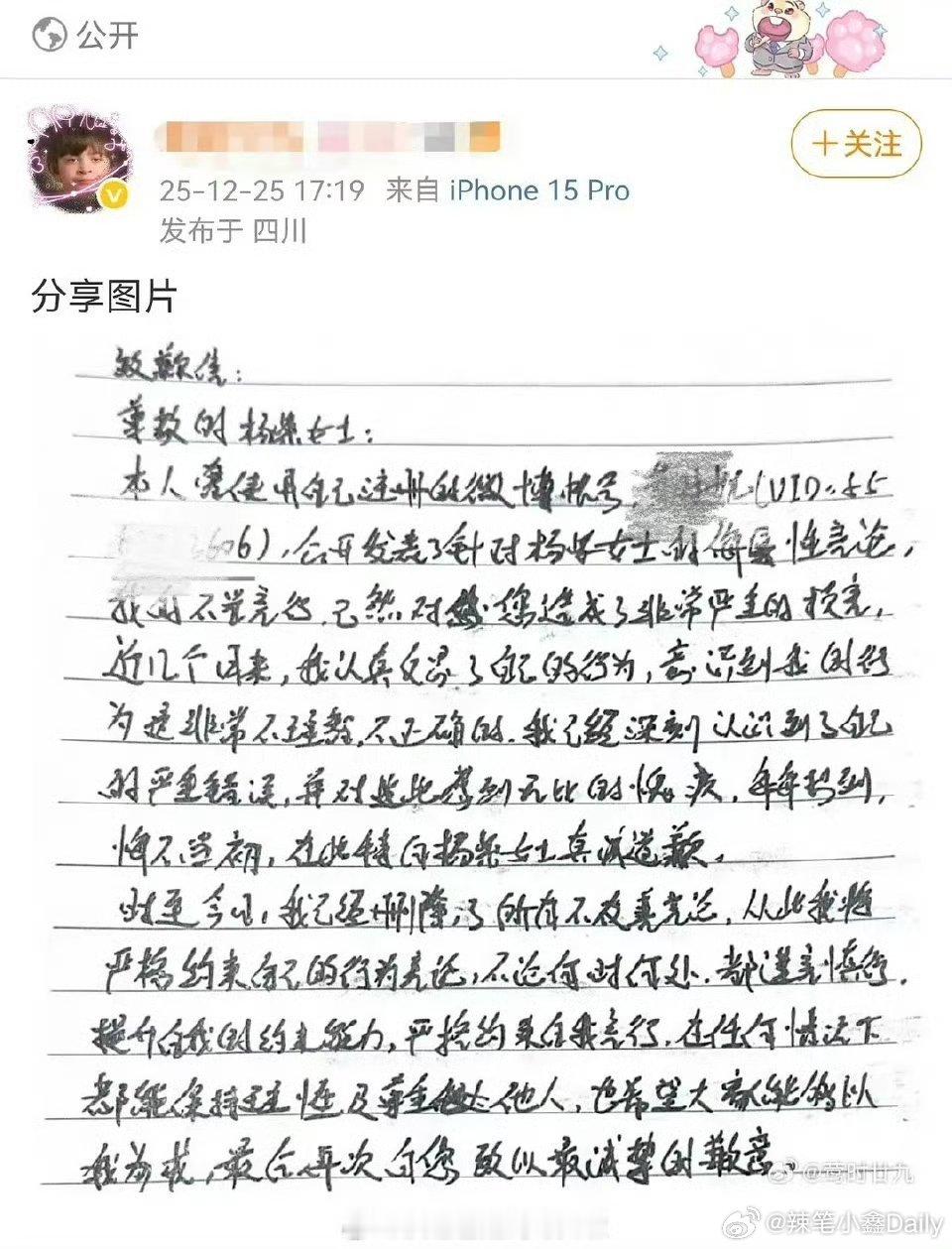 杨紫工作室告黑维权案胜诉,黑粉手写道歉信道歉,网络不是法外之地,支持紫姐维权。大