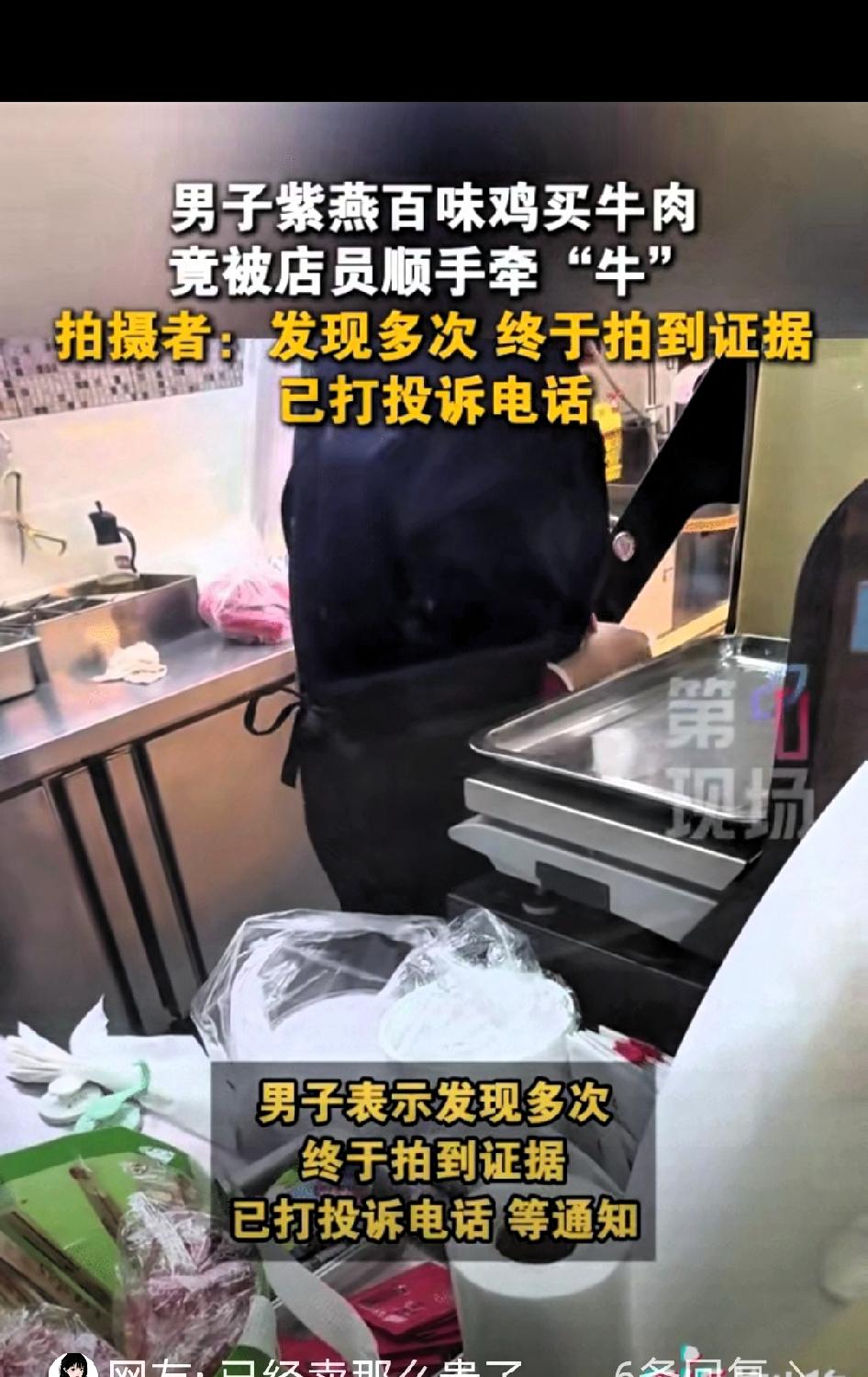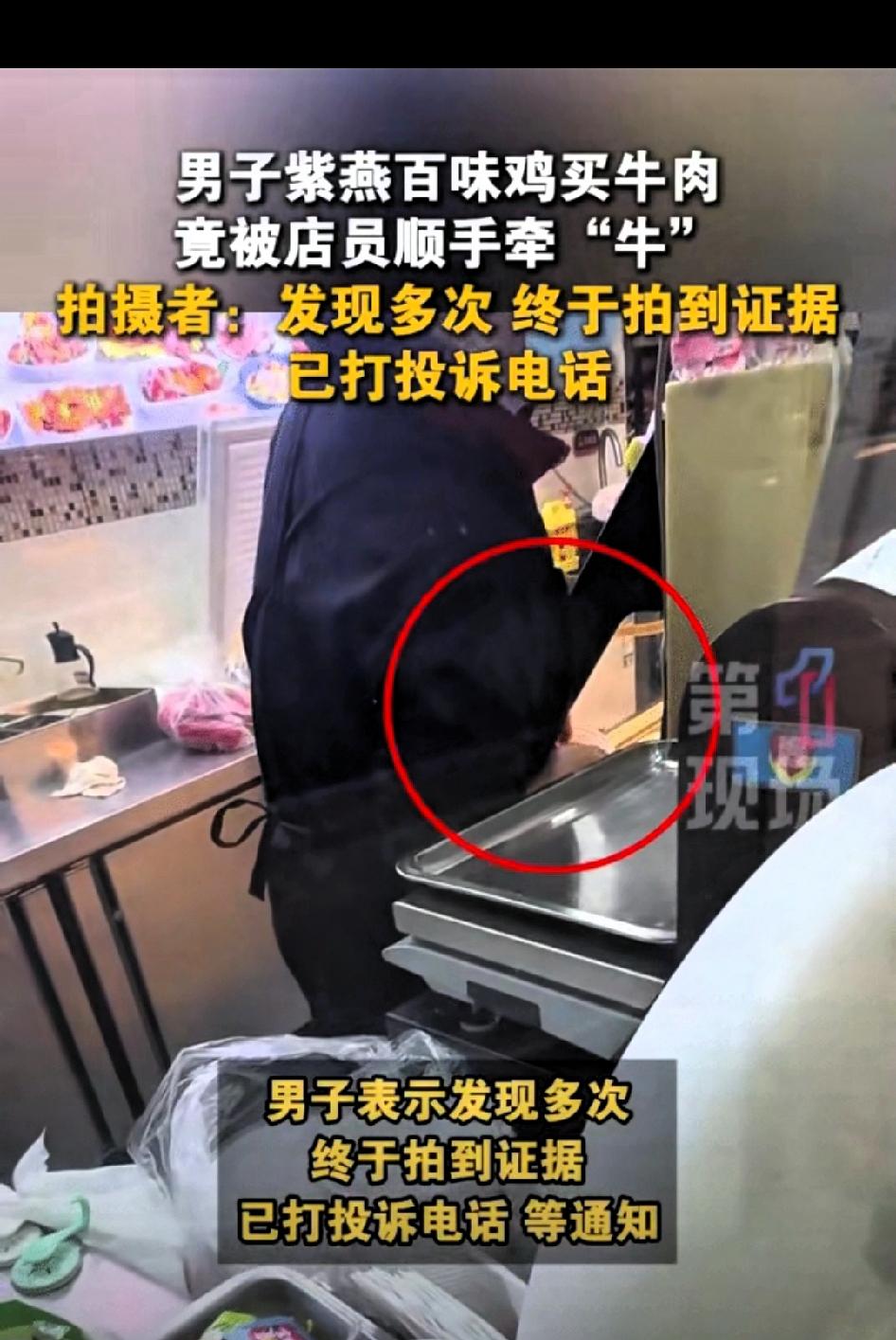 这绝对是惯犯!江苏,一男子在紫燕百味买牛肉,每次买回家,都发现牛肉好像比称的时候少了很多,百思不得其解 他留了个心眼,连续观察好几次,终于拍下了关键证据:原来店员每次称完牛肉后,都会趁他转身或者不注意的空档,偷偷从盒子里抽出几片牛肉! 这波操作实在不地道,合着消费者花的是足斤足两的钱,买的却是被“暗箱操作”过的商品。 这事一曝光,评论区直接炸开了锅,不少网友吐槽买紫燕的夫妻肺片也踩过坑,称重时看着满满一碗,回家打开全是红油和拌料,肉少得可怜;还有人说遇到过类似的缺斤少两,气得再也没踏进过这家门店。 别以为这只是个别店员的手脚不干净,说到底,这其实是商家对诚信经营的漠视。这种隐形的克扣行为,比明着涨价更让人膈应。 更关键的是,这种小动作之所以屡禁不止,就是因为商家赌定了很多消费者嫌麻烦,不会较真,就算发现了也懒得维权。 但咱们消费者不是冤大头,遇到这种情况千万别忍气吞声,要么当场盯着称重全程,要么保留好小票和视频证据,直接打12315投诉维权。 只有人人都拿出较真的态度,才能让这些耍小聪明的商家无处遁形,让咱们的消费环境更踏实。