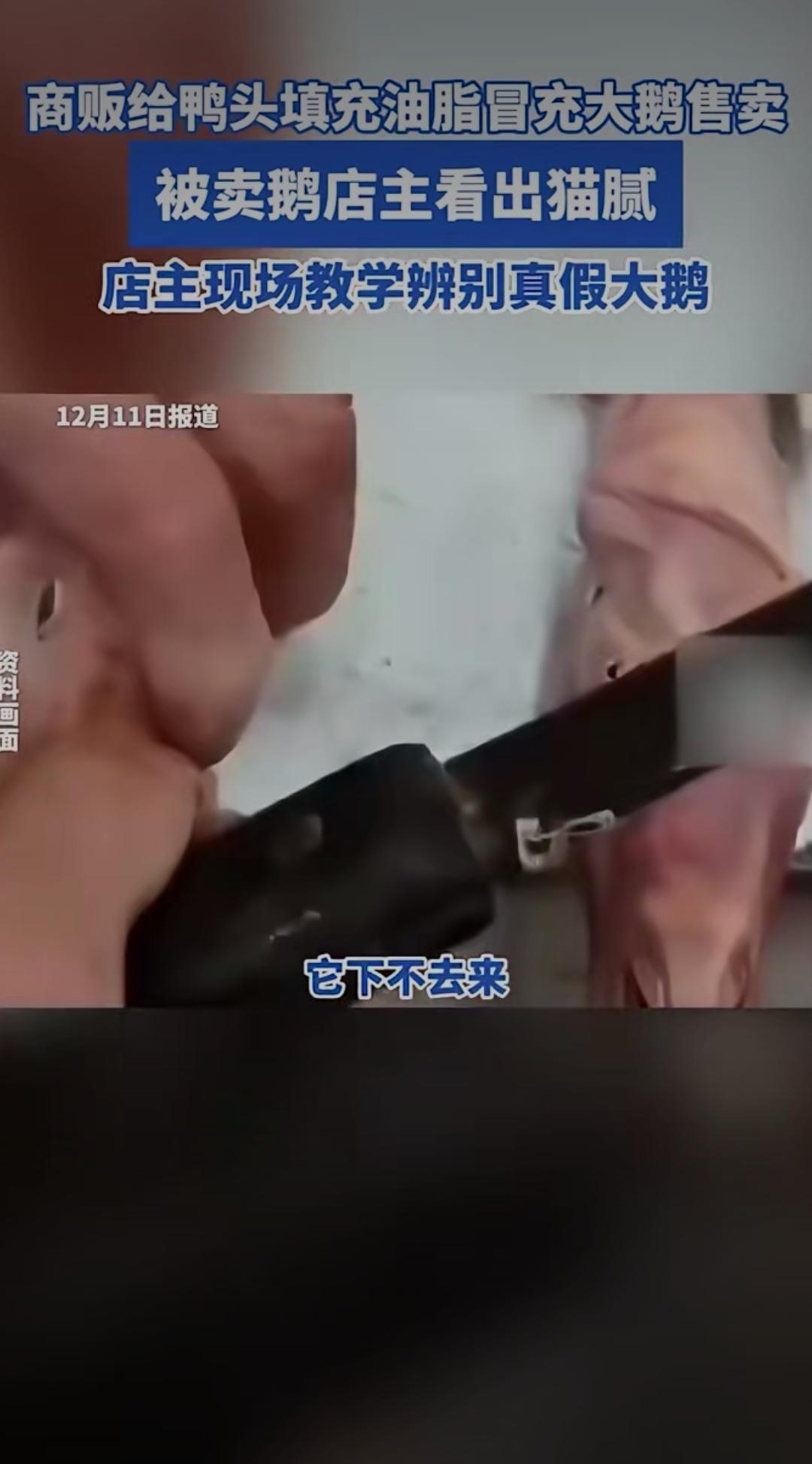 鸭头灌油充大鹅?商贩的小聪明,终究败给了良心店主!以鸭充鹅 商贩给鸭头填充油脂冒充大鹅售卖,被卖鹅店主看出猫腻,店主现场教学辨别真假大鹅。12月11日,据闪电新闻报道,吉林白山这起“挂鸭头卖鹅肉”的离谱事儿,直接把网友看傻了! 顾客兴冲冲拎着3只“大鹅”找店主剁块,准备炖一锅热乎乎的硬菜,怎料店主一刀下去就皱起了眉头——两只“大鹅”的脖颈处鼓鼓囊囊,切开全是凝固的油脂,掰开一看,分明是鸭子的骨架!原来,商贩瞅准鸭子6元一斤、大鹅15元一斤的差价,把鸭头塞满油脂增重,再修剪得跟大鹅外形相似,专坑不懂行的顾客。 最解气的是店主的反应!他没有事不关己高高挂起,反而当场化身“科普员”,拿着真假食材对比教学:“你看这大鹅的脖子更粗,骨架硬朗,鸭子的骨架纤细,填充的油脂一捏就散!”几句话点醒围观路人,也让缺德商贩的小心思无处遁形。 网友看完直呼“学到了”,更怒批商贩:“为了几块钱差价,连良心都不要了!”要知道,老百姓买年货、办家宴,图的就是个实惠安心,这种以次充好的伎俩,不仅骗了钱,更寒了大家对小商贩的信任。 其实不止是鹅和鸭,市场上总有黑心商家玩“狸猫换太子”的把戏:注水肉、合成海鲜、以次充好的干货……但邪不压正,像这位店主一样的良心人,就是戳破骗局的一道光。他们守住的不只是生意的底线,更是人与人之间最基本的诚信。 你还知道哪些辨别肉类真假的小妙招?