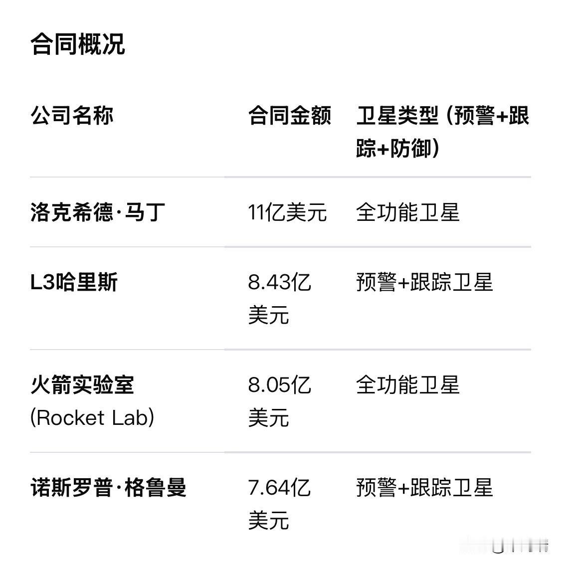 美国太空发展局(SDA)于12月19日宣布,向四家公司授予总计35亿美元合同,采购72颗低轨道导弹预警和跟踪卫星,这是美军低地球轨道星座史上最大单笔交易。 • 订单规模:35.2亿美元(约254亿人民币),采购72颗卫星,平均每颗约4860万美元,比传统军事卫星成本降低近60% • 交付时间:未来3年内,四家公司各生产18颗 • 战略定位:属于美军"扩散型太空作战架构"(PWSA)的"跟踪层第三批次"(TRKT3),预计2029财年完成部署。