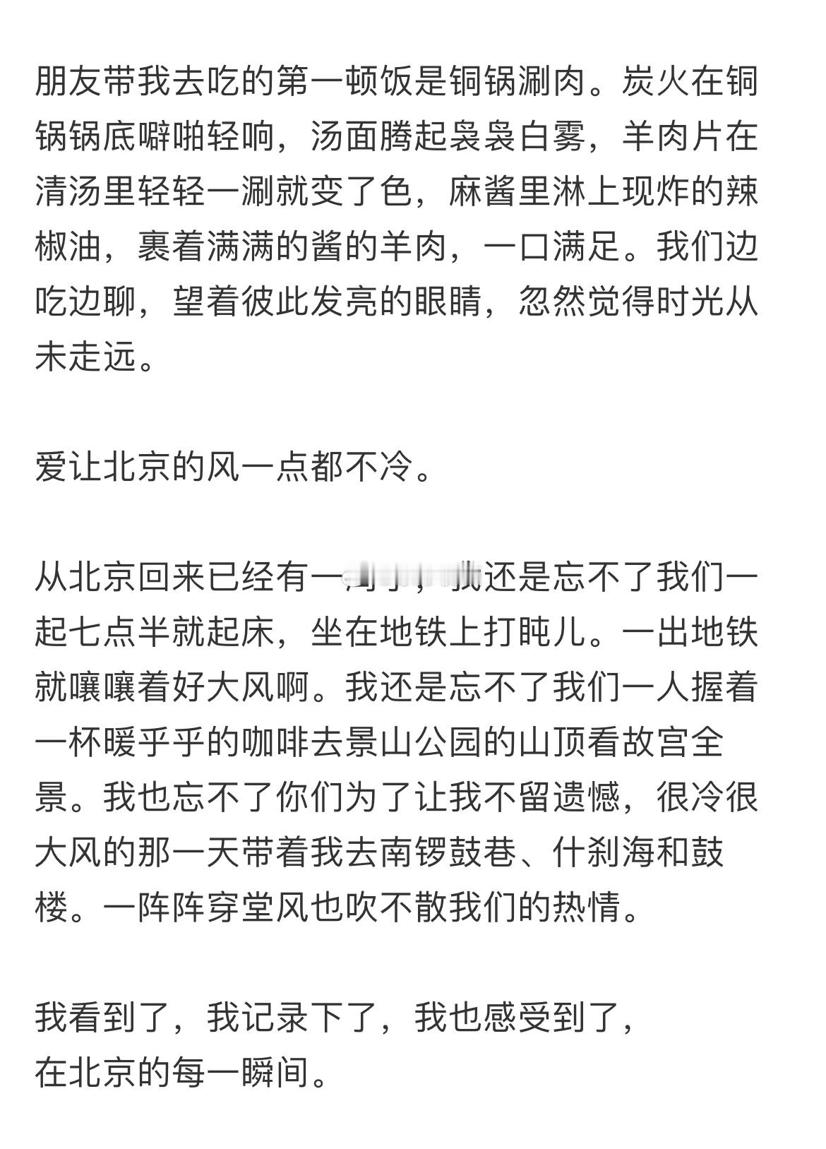 第一次去北京的真实感受北京每一处都藏着故事,如果下次有足够的时间,我要放慢脚步,像个虔诚的信徒,细细探寻这座城市每一寸土地下隐藏的故事。
