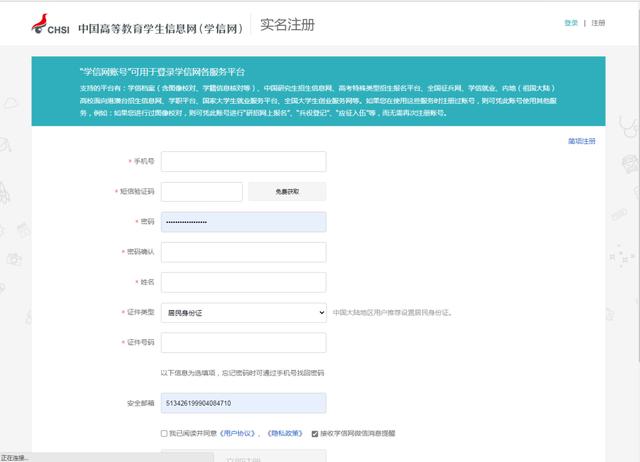 四、已在学信网注册过“账号”的直接输入账号密码,点击“登录”即可,未注册过“学信网”的点击“注册”。