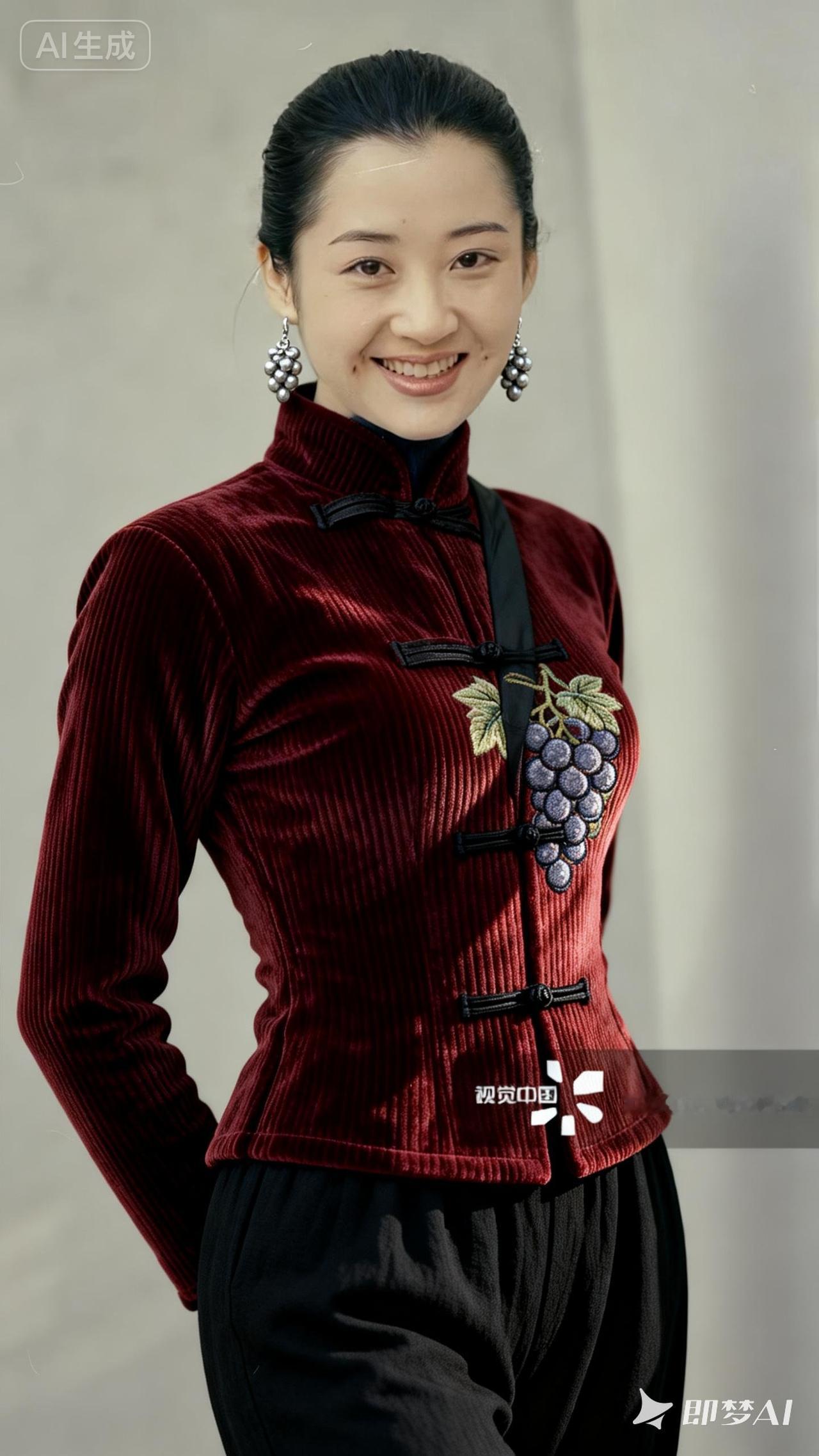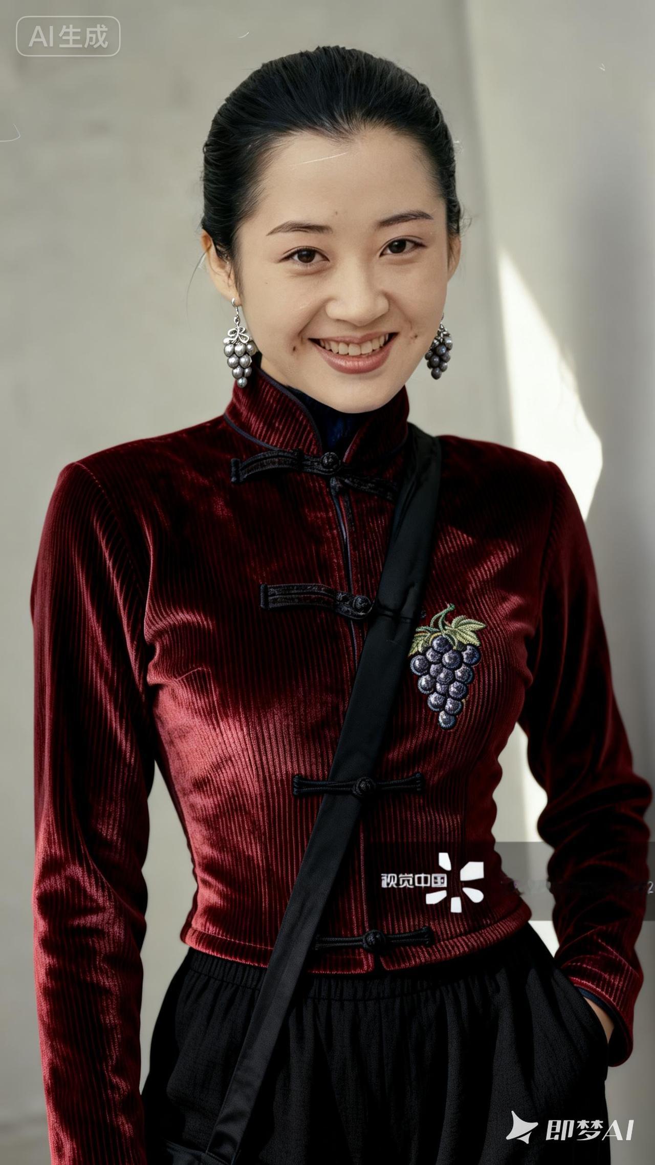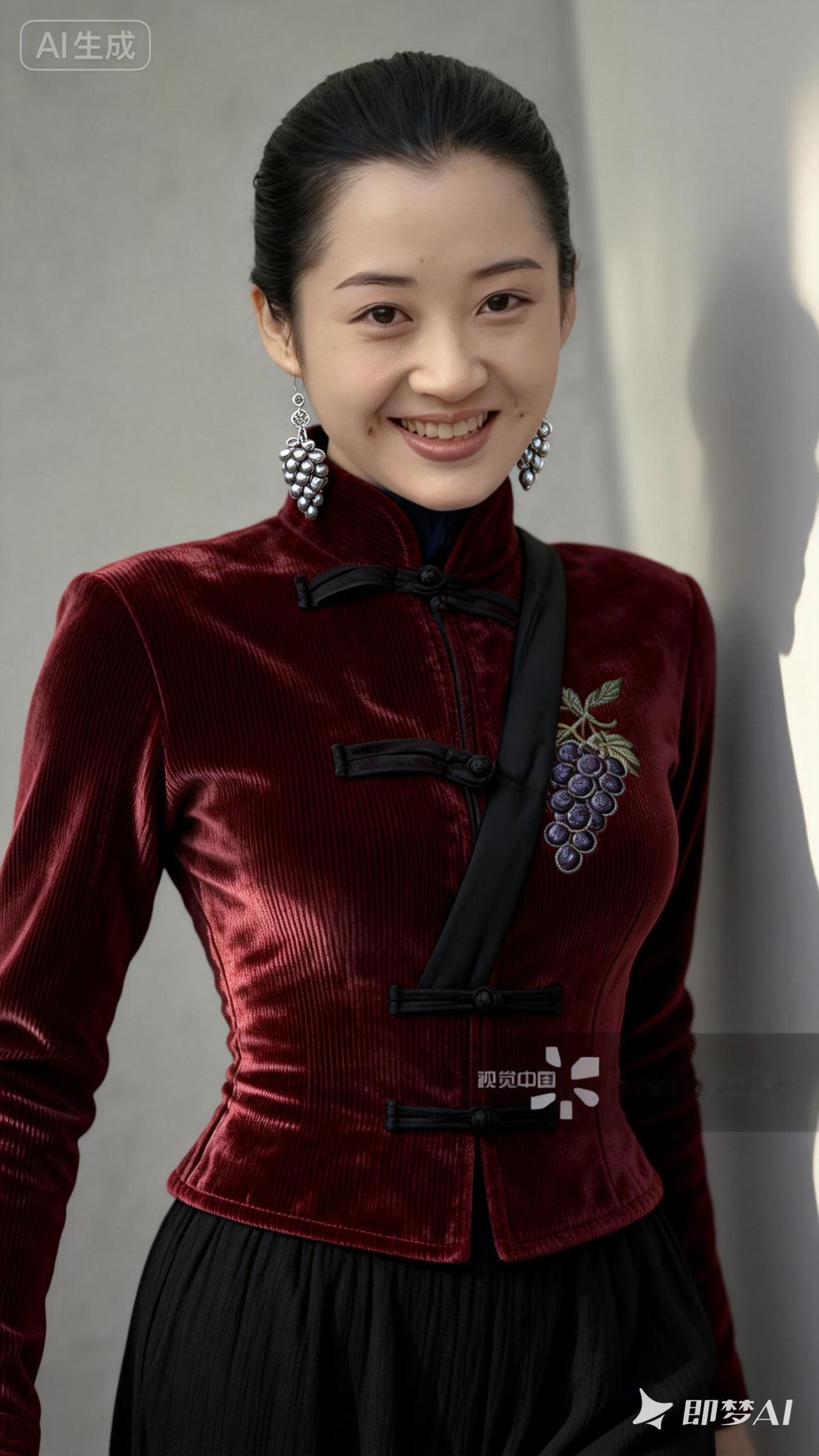 优雅红衣少女,微笑动人,复古风穿搭