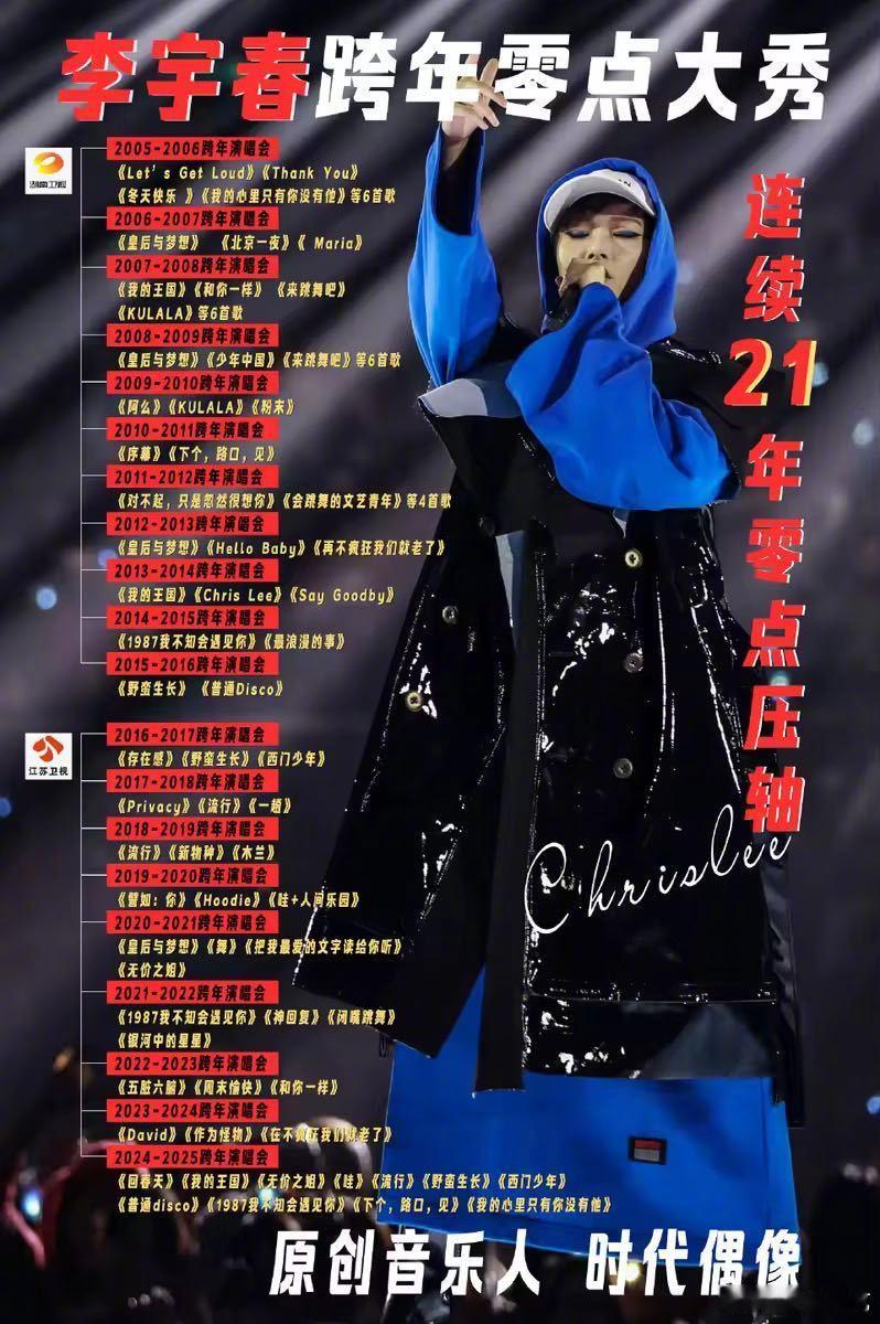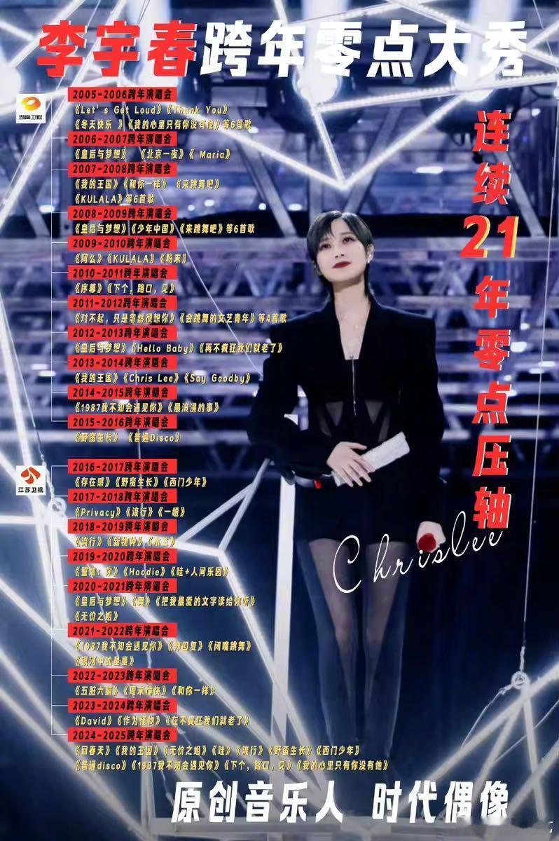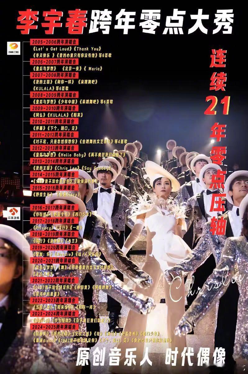 内娱二十一年跨晚压轴的含金量接荔2026 江苏卫视多年来始终坚持“真唱、实力、技术、温度”于一体的“白金品质”,主打全开麦、Live级的视听体验。这既是对观众的尊重,也是对歌手实力的考验。多年来,承载着零点压轴开唱的压力,21年跨年晚会压轴的含金量,自是不必多言!江苏卫视跨年