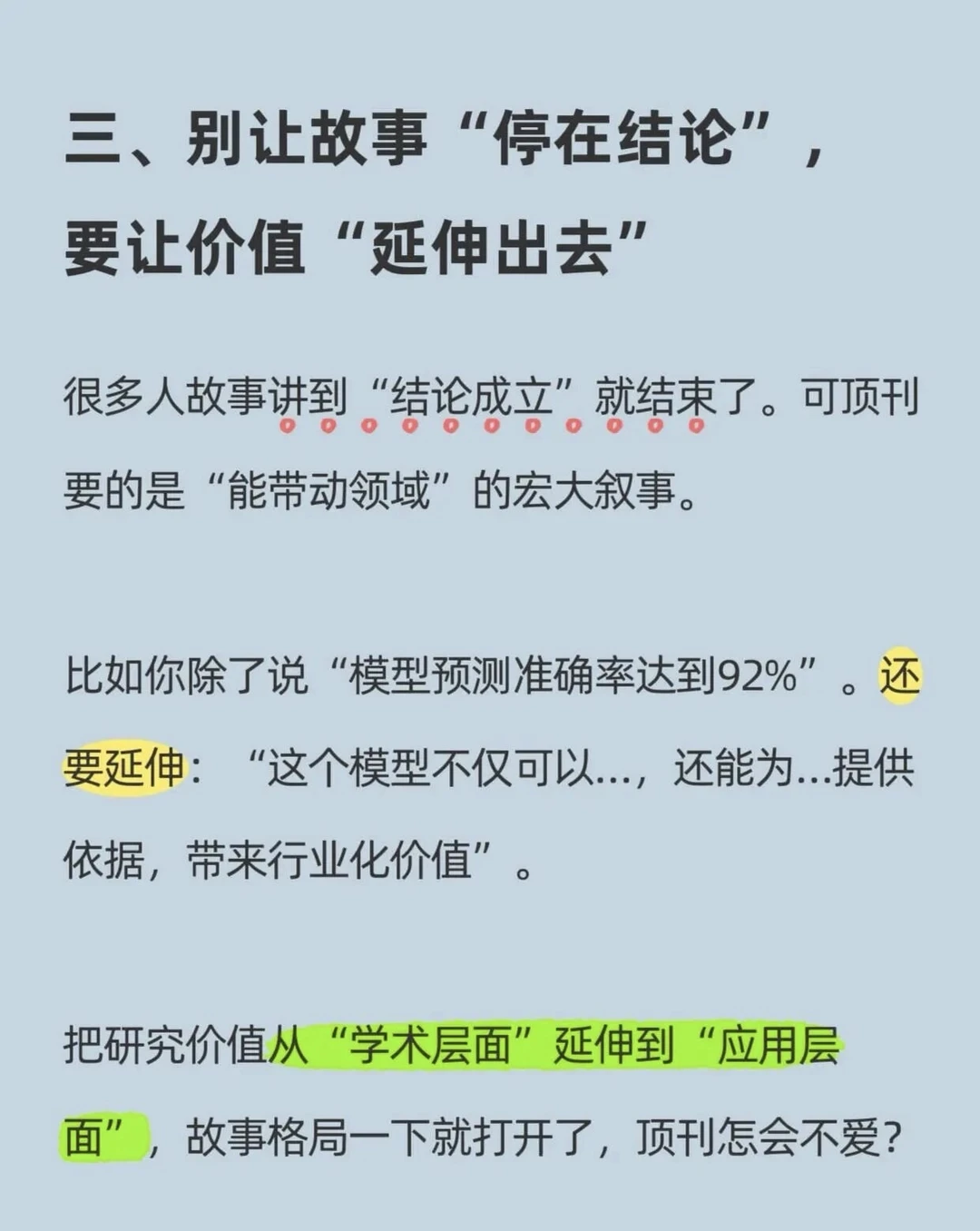 能不能发顶刊取决于故事串联的角度和深度!能不能发顶刊,核心在故事串联: 1、选对“领域视角”让价值显性, 2、挖深“数据背后”让研究独特, 3、延伸“价值边界”让格局打开。 数据是底气,但好的串联角度和深度,才是让你在众多稿件中突围的关键!
