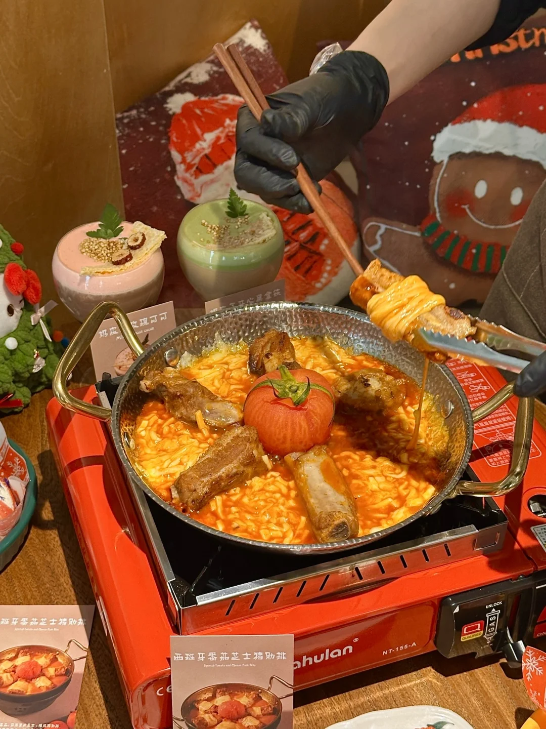 对自己选的圣诞约会餐厅满意到不行!! 无论是环境氛围还是菜品味道都蛮喜欢 芝士猪肋排滋滋冒香一口下去肉汁超足🥺🥺 最惊喜的是奶皮子开心果拿铁 口感绵密 又不会过于甜腻