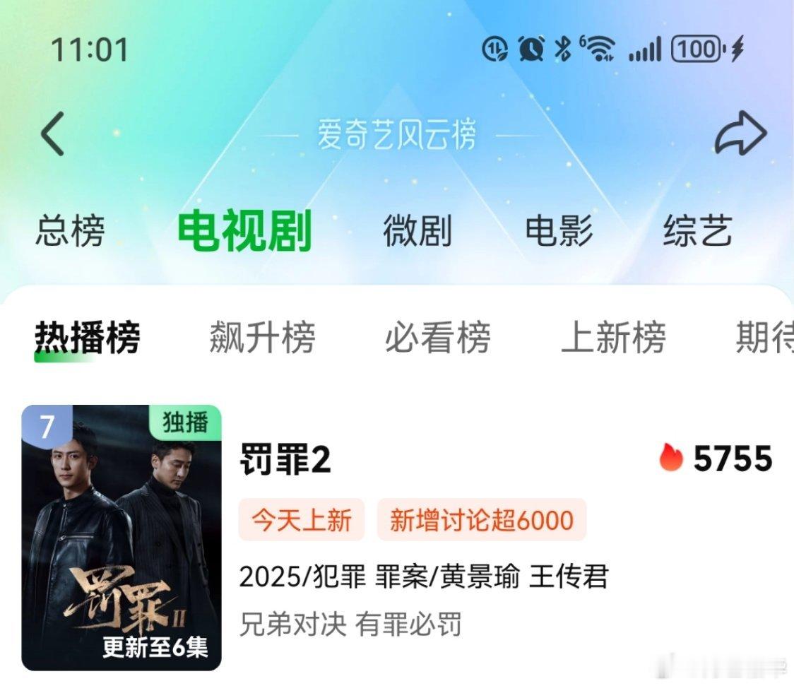 黄景瑜罚罪2黄景瑜秦枫罚罪2开播0片花真空降,起始热度755,3小时达5755,已经超过前作周日,作品好就啥都不怕了。