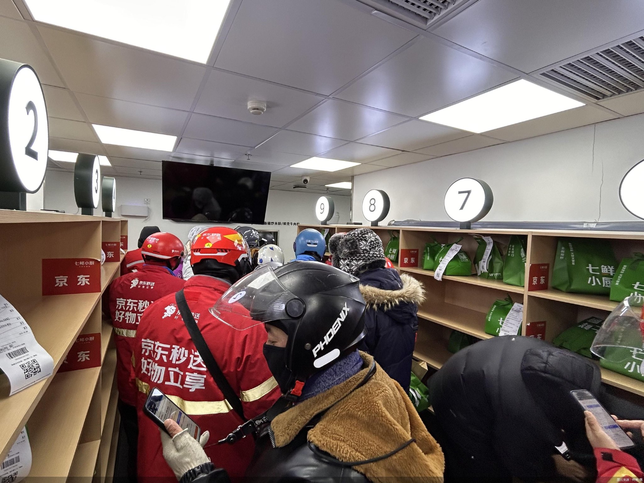 “从今天开始营业到中午11点,店内已经送出500多单了,现在还在爆单中。”七鲜小厨北京长保大厦门店的马店长告诉北京商报记者。在午餐高峰期,不少京东、美团等骑手在店内寻找订单。一位常跑附近区域的骑手表示,每天大概有十几个订单会来自七鲜小厨。