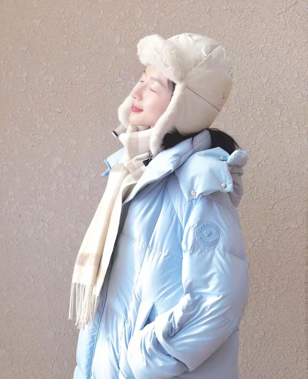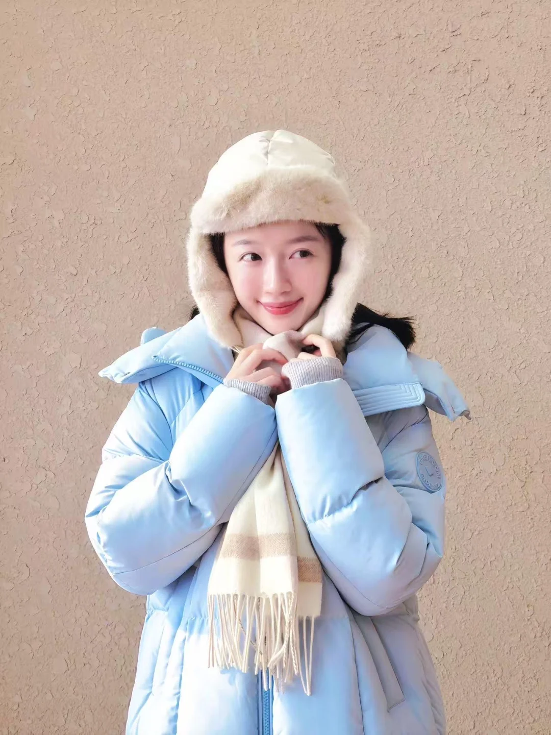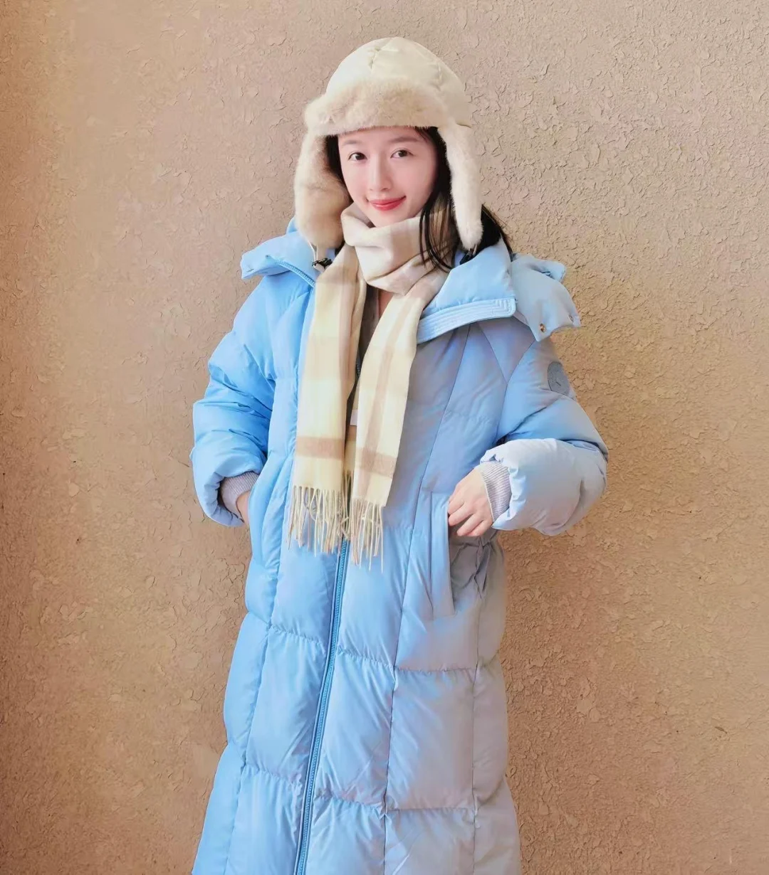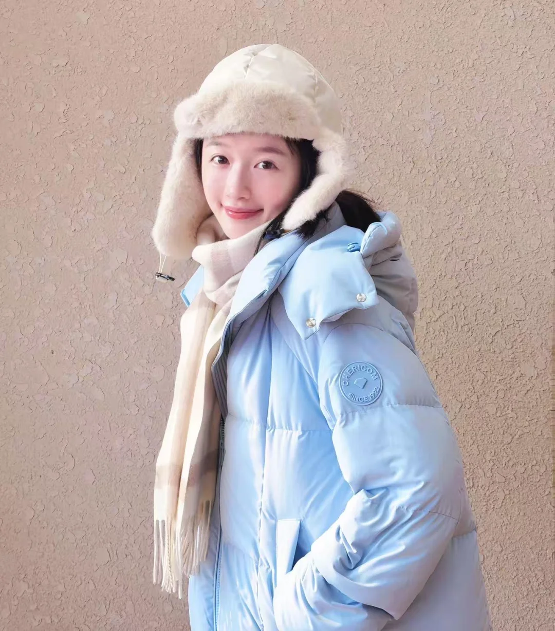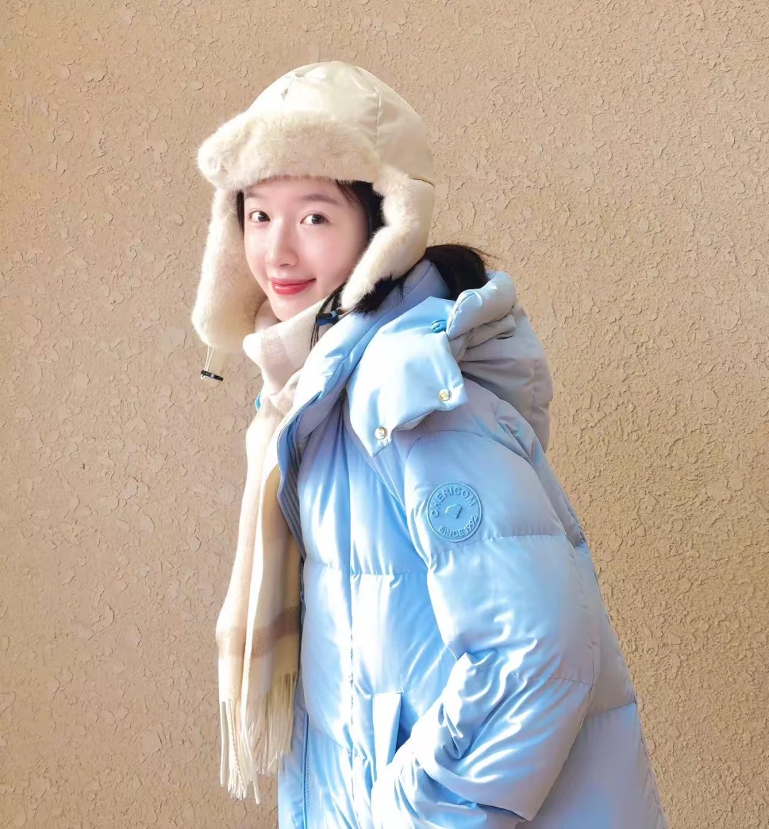 发现李浩菲这套私服,感觉还不错诶,分享上来,千仞岗Baby蓝色高充系列羽绒服好吸睛,同时搭配毛绒帽与格纹围巾加以点缀,既保暖又很清新!