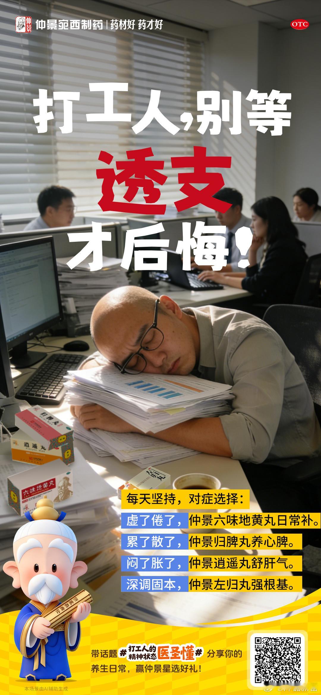 打工人的精神状态医圣懂 打工人的日常,特别是对于38岁的打工人,开始面临的是压力大,脱头发,久坐的腰困,体力不支,后来在朋友的推荐下,我知道了医圣张仲景,感觉找到了打工人的“救星”, 在朋友的推荐下,就开始吃了他给我寄来的几盒「仲景宛西制药」的中成药——比如六味地黄丸、归脾丸、逍遥丸、左归丸,两周后,发现头发再也不掉了,而且睡眠睡得很香,腰部也不困了, 他们的作用可以见图1到图6。