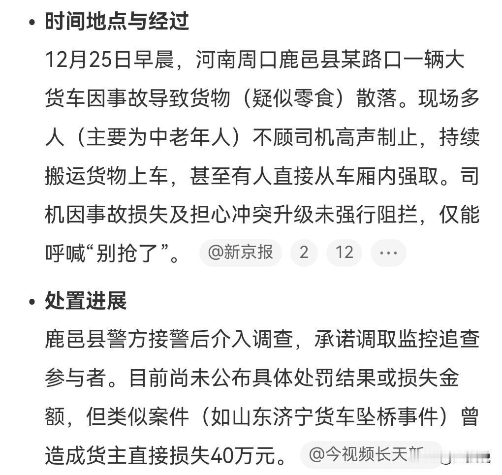 这真的是太恶心了,竟然发生这种事情。 25日,河南一大货车出事故多人哄抢货物。 出车祸已经够倒霉的了。 没想到还有人来哄抢车上的货物。 真的是太缺德了。 这种“零元购”的行为太恶劣了。 应该追究这些人的责任。
