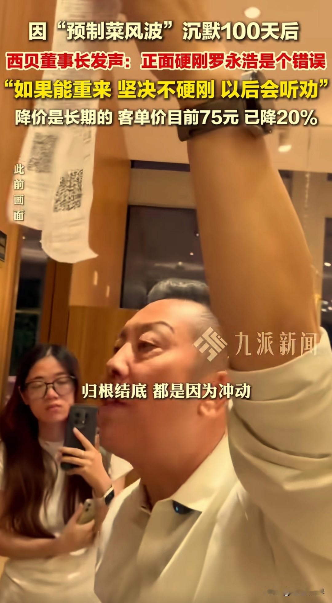 在西贝陷入预制菜风波100后天,创始人贾国龙近日首次接受媒体采访,在采访中,他说也进行了深刻的反思,承认自己在此次风波中犯了多个错误,归根结底是自己太骄傲了,骄傲让他对很对事情产生误判。 他也反思了三个具体错误:第一个不应和罗永浩正面硬刚并表示要起诉,第二个是匆忙开放了厨房参观,第三个就是在内部沟通中说罗永浩是“网络黑社会”的不当表述。 他说还有最大的错误就是选择与顾客硬刚,并长期忽视了顾客的声音,他也为此郑重认错,说:“我认错,向顾客认错,向员工认错,也向我自己认错”。 贾国龙承认,关于预制菜定义,尽管西贝的操作符合国家相关标准中对“中央厨房预加工”的界定,但是他不该用这一定义去对抗公众的认知。 贾国龙透露,在此次风波对西贝的冲击超过以往任何危机,西贝也在过去100天里推行了多项实质性改进,从2025年10月起,对全国门店30余道菜品进行了降价,平均降幅20%,客单价从92元下调至75元左右。 已降价的菜品不会再涨价,这是西贝的长期政策,西贝的定位不会因此变成一个低价品牌,作为连锁餐饮,西贝不可能完全脱离中央厨房。 也加强食品安全和透明度,全国门店落实“明厨亮灶”,实现后厨直播,让制作过程一目了然。贾国龙表示将放缓扩张速度,先稳健经营好现有300多家门店。 未来西贝将致力于打造“家庭欢乐餐厅”,并探索在门店增加服务人手、提升体验的新商业模式。 西贝现状 西贝公关 西贝餐饮 西贝公关灾难 西贝饮食 西贝餐饮事件 西贝餐厅事件