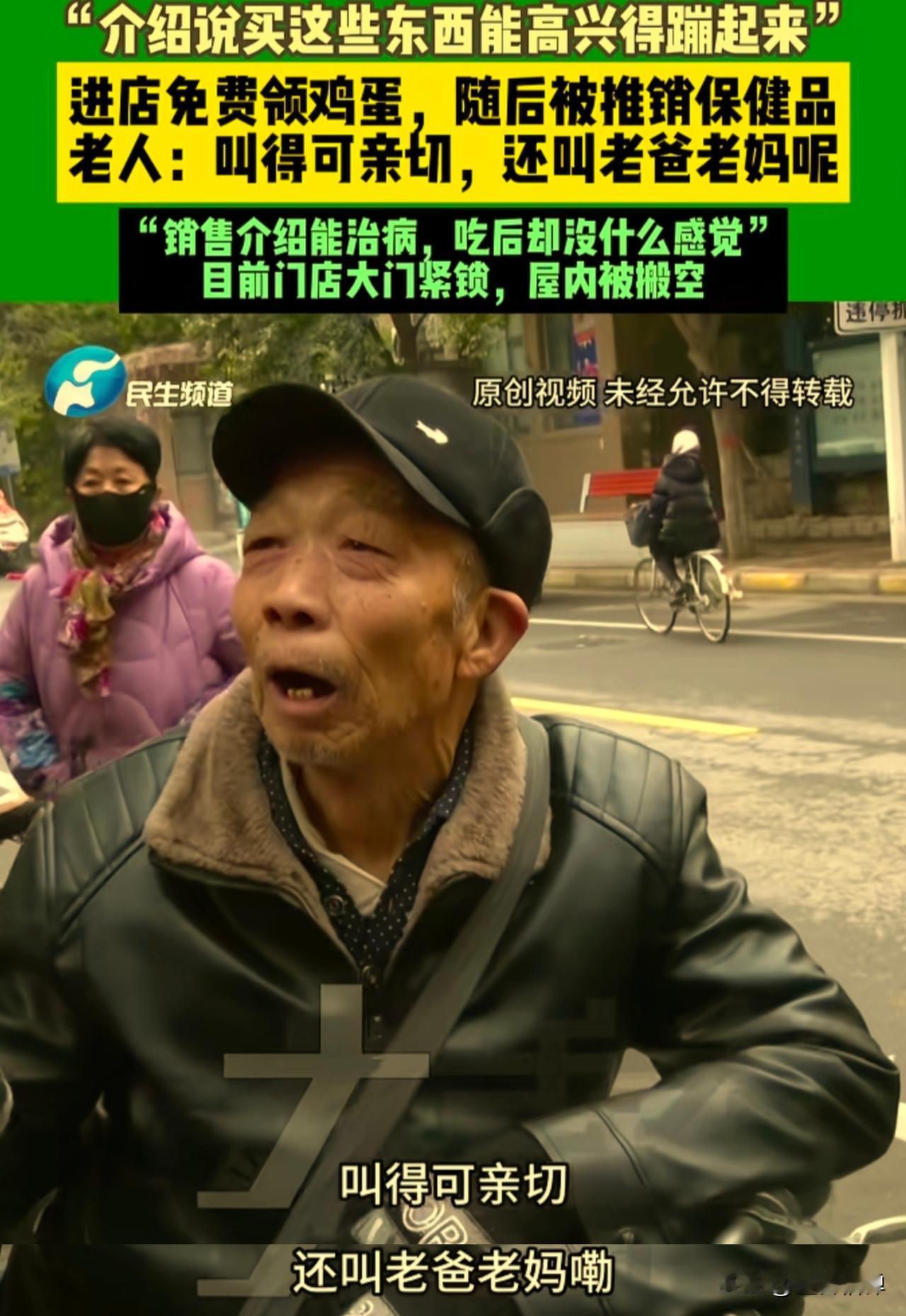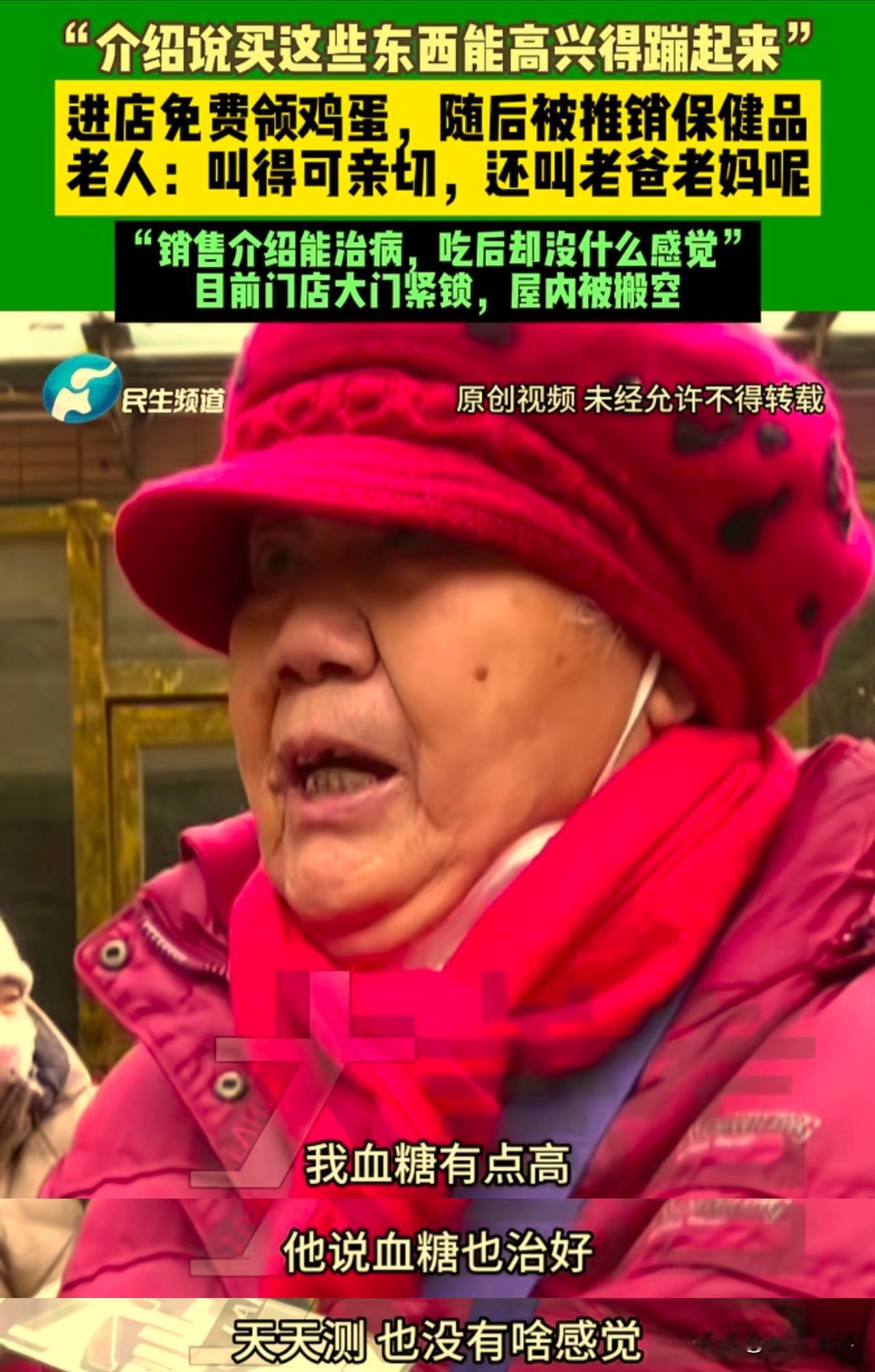 在河南郑州,老人说有一家店专门骗他们老年人,进去店里15分钟就可以领取10个鸡蛋,老人们想着闲着也是闲着,就一个个进去领了鸡蛋。 进店之后里面销售给他们介绍保健品,说可以治疗失眠,高血压高血糖啥病都可以治。大爷说他们叫的可亲切了,还叫他们老爸老妈。 一大妈说她进去的时候说她血糖有点高,那里面销售说血糖也可以治好,她买了回去天天测也没啥效果,这个保健品一盒500块钱,说买一个疗程身体就会很好了。 她们当中买的最多的花了一万三,也有花三千五千的,最少的花了一千块钱,服用了都没效果,现在这个店连门都关了,里面东西也全部搬空了。 现在针对老年人的骗局太多了,有网友说:我妈也是跑到去领鸡蛋,买保健品。后来下雪天出去领鸡蛋摔了脚,医院躺了半月,让我哥和我批评教育了一顿再也不去了。 来源:大参考 老年人新型骗局 骗老年人骗局 老年保健品骗局 新型老年骗局 老人鸡蛋骗局 骗老人的产品 中年人骗局 骗老人的广告 老年保健品诈骗 领鸡蛋送酒骗局 领蛋骗局 保险品骗老人家 蛋糕试吃骗局 防保健品骗局 老人新形骗局