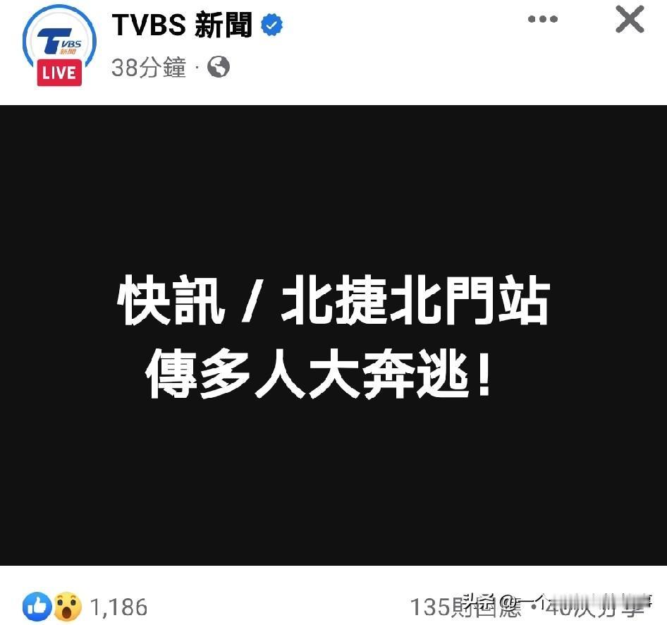今晚台北地铁再度上演大逃亡!风声鹤唳的台湾民众。 今晚8点30左右,台北地铁北门站车厢内,一名40岁左右的男子突然情绪失控,拿雨伞敲打车窗并大声咆哮,引发车厢内其他乘客恐慌大逃亡,导致多人摔倒,一70多岁老太跌倒送医,所幸并无大碍。 经历12.19台北车站砍人案后,台湾民众风声鹤唳,犹如惊弓之鸟。