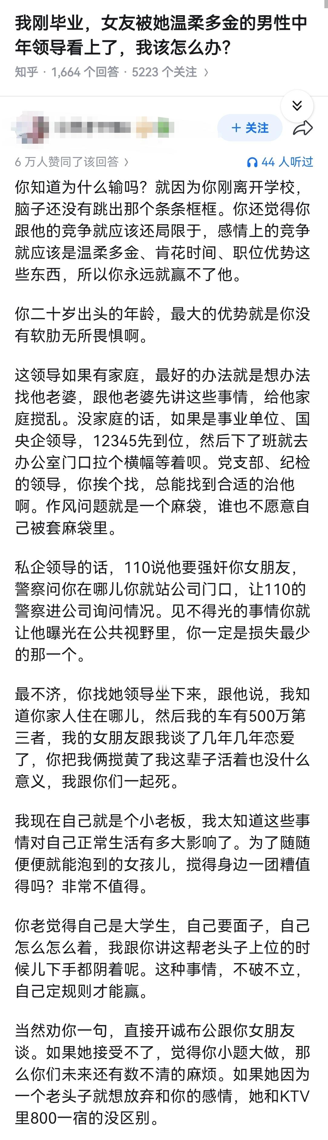 我刚毕业,女友被她温柔多金的男性中年领导看上了,我该怎么办?